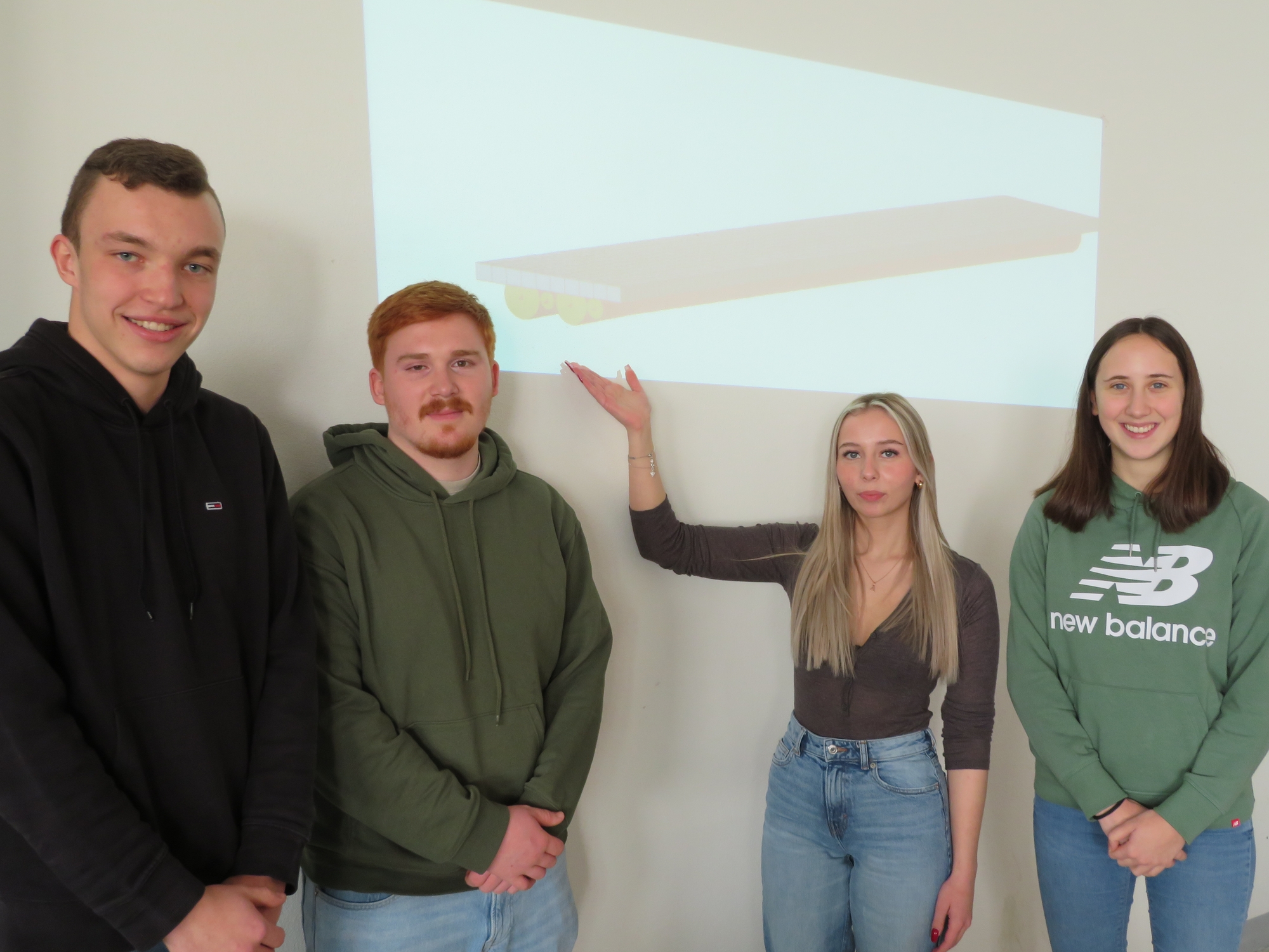 Ziel der Diplomarbeit der Bautechnik-Maturant*innen Anna Gullner, Verena Fritz, Jan Krobath und Raphael Beiglböck, die von den Professoren Wolfgang Leeb und Ulrich Spener betreut werden, ist es, eine ökologische Baumethode in Form von Rundholzbetonverbund zu entwickeln, die dank der Verwendung von unbehandeltem Rundholz (lediglich entrindete Baumstämme) nur 15GJ verbraucht und dabei so beständig wie Beton oder Stahlbrücken ist. Dazu wird ein Prototyp über die Feistritz im Natura 2000 Gebiet am Fuße des Schlosses Herberstein geplant und tatsächlich auch umgesetzt. Diese soll eine bestehende Brücke ersetzen. Das dabei erprobte und von den Schüler*innen entwickelte Bemessungstool bzw. die Umsetzungsanleitung sollen dann frei zur Verfügung gestellt werden und Nachahmer unterstützen.