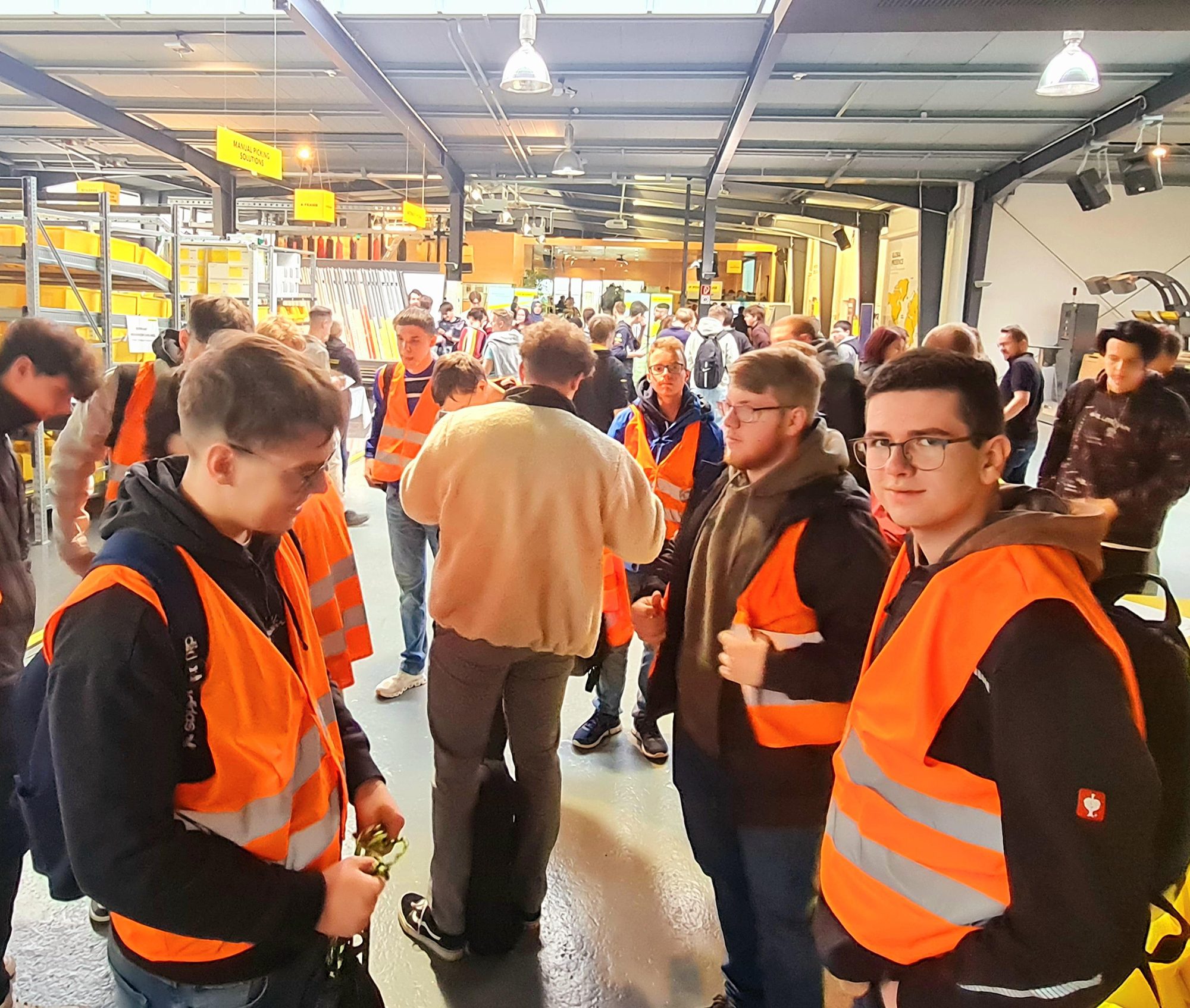Nach einer kurzen Vorstellung des Unternehmens und der Fachbereiche, wurden die Schülerinnen und Schüler in Gruppen eingeteilt, um mehrere Stationen im Unternehmen zu besuchen. Neben einer Werksführung gab es zahlreiche Informationsstände und eine Anlagenvorführung. Hier konnten sich die Schülerinnen und Schüler überzeugen, wie viel Programmier-Knowhow in einem voll automatisierten Lager steckt.