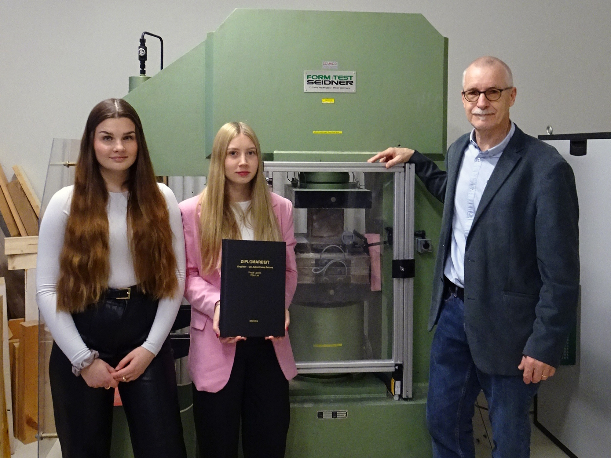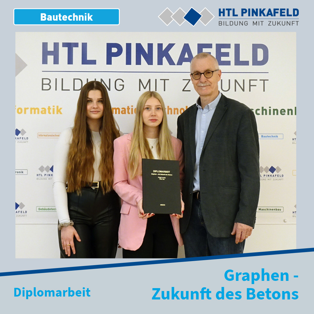 Mitte April wurde die Diplomarbeit „Graphen – die Zukunft des Betons“ von den Bautechnik-Maturantinnen Priedl Leonie und Pötz Lea an ihren Betreuer Oberstudienrat Peter Derler übergeben.