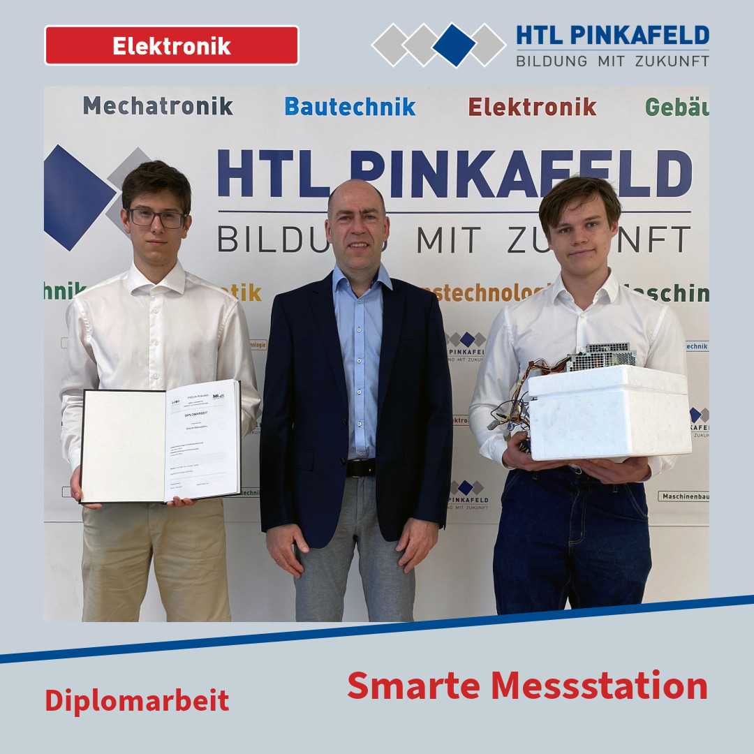 Anfang April wurde die Diplomarbeit „Smarte Messstation“ von den #Elektronik-Maturanten Jonas Bauer und Andreas Ritz an den Auftraggeber #HTLPinkafeld übergeben. Betreut wurde die Arbeit von Prof. Christoph Csebits.