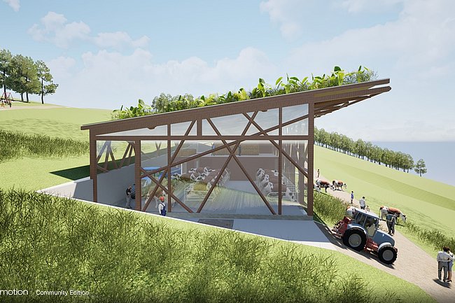 Ziel dieser Arbeit war die Ausarbeitung eines Entwurfes einer Almhütte in Holzbauweise, welche langlebig und widerstandsfähig gegen die hohe Belastung durch Wind und Wetter in höheren Gebirgslagen ist. Sowohl für die Errichtung als auch der Betrieb, z.B. Heizung, sollte größtenteils der nachwachsenden Naturstoff Holz verwendet werden. Neben der Almhütte wurde auch ein Kuhstall mit integrierter Käserei geplant. In einem angeschlossenen Verkaufsraum können die Produkte verkostet und vermarktet werden. Ein touristischer Anziehungspunkt soll einen Aussichtsturm werden, der im ähnlichen Design aus filigranen Stäben wie bei einem Mikado entworfen wurde und barrierefrei erreichbar ist, um ihn zugänglich für alle Menschen zu machen.