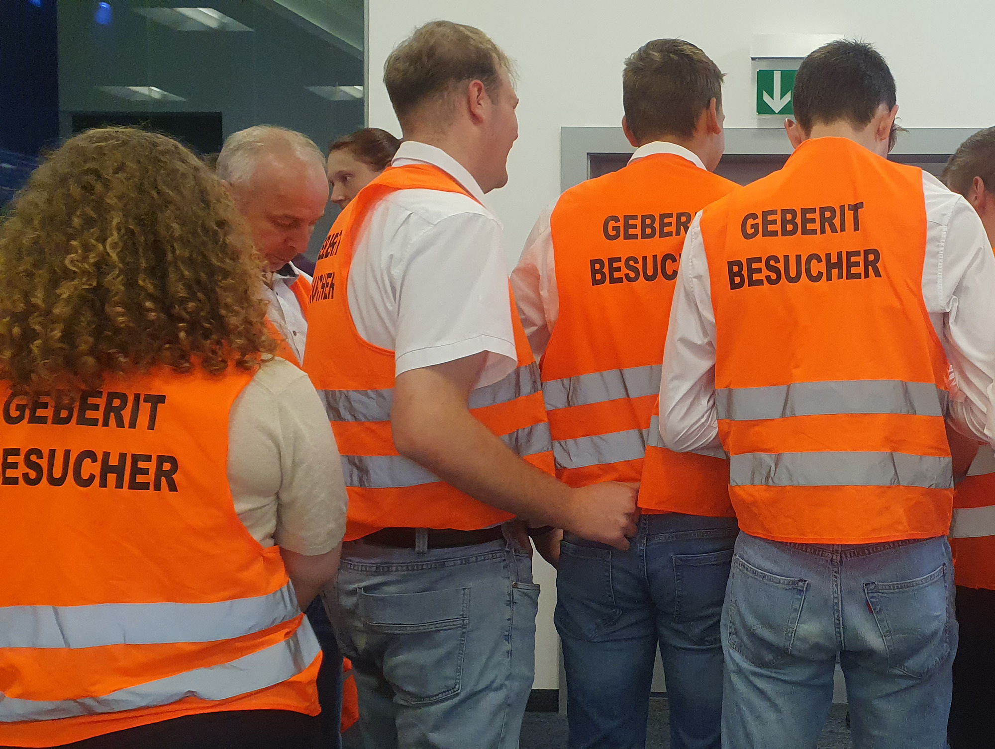 Ende Mai besuchte der vierte Gebäudetechnik-Jahrgang der HTL Pinkafeld unter Leitung von Frau Prof. Birgit Stephan und Herrn Prof. Peter Gesslbauer die Firma Geberit www.geberit.at/home/ in Pottenbrunn. Nach einer kurzen Einführung durch Herrn Ing. Harald Hofko in die Firma Geberit bekamen die Schülerinnen und Schüler in drei Gruppen eine von äußerst kompetenten Lehrlingen der Firma Geberit geführte Werksführung, die auf großes Interesse stieß. Danach wurden die Schülerinnen und Schüler auf neuesten Stand der Produkte von Geberit gebracht.
