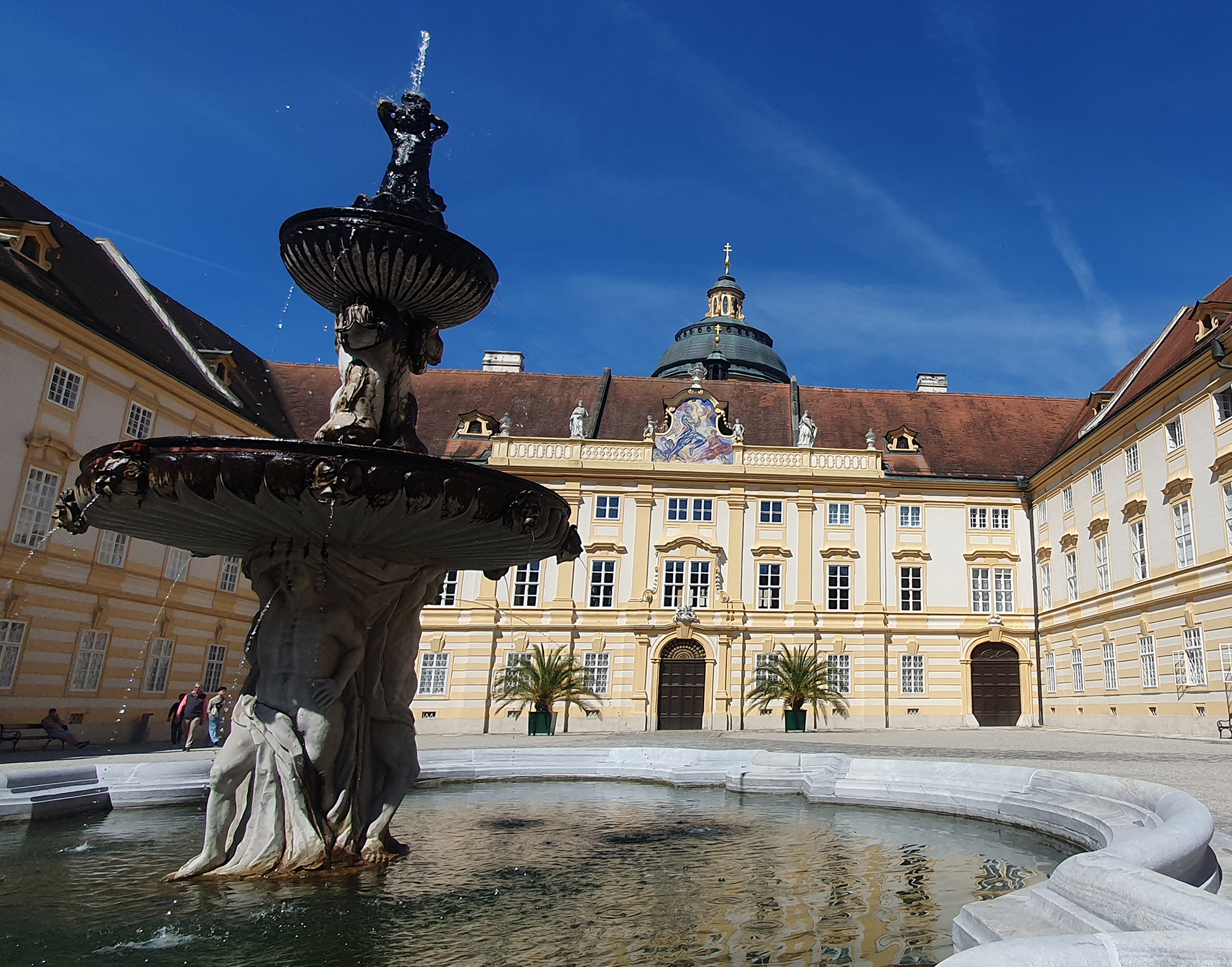 „Wie Wasser ein Spiegel ist für das Gesicht, so ist das Herz ein Spiegel für den Menschen“. Unter diesem Motto begann der zweite Tag der Exkursion mit einer Führung im Stift Melk https://www.stiftmelk.at/, UNESCO Weltkulturerbe und ein Stück österreichische Geschichte. Über die Kaiserstiege gelang die Gruppe in den Marmorsaal, das Stiftsmuseum, die Bibliothek und schlussendlich in die hochbarocke Stiftskirche des Benediktiner Ordens.
