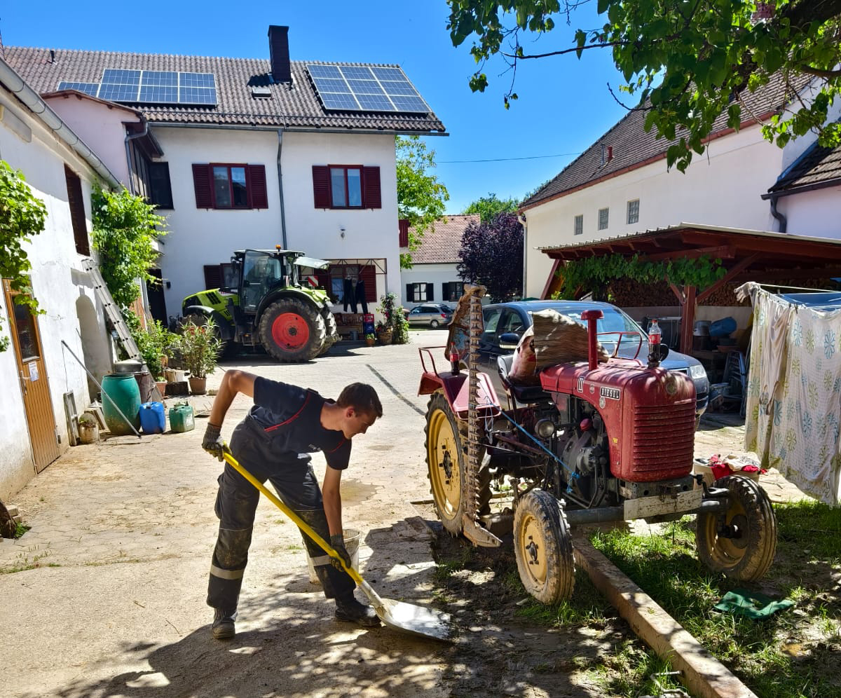 Ein besonderes Highlight war der Besuch von Andi Knoll und seinem Ö3-Radio-Team, die im Zuge der Livesendung „Knoll packt an“ vor Ort waren, zum Nachhören unter https://oe3.orf.at/player/20240617/3KPA/1718630094314. Mehrere Schüler*innen wurden live interviewt und halfen gemeinsam mit Andi Knoll. Die Dankbarkeit der Bewohner und Gastfreundlichkeit der örtlichen Feuerwehr Unterschützen beeindruckten die Schüler*innen sichtlich.
