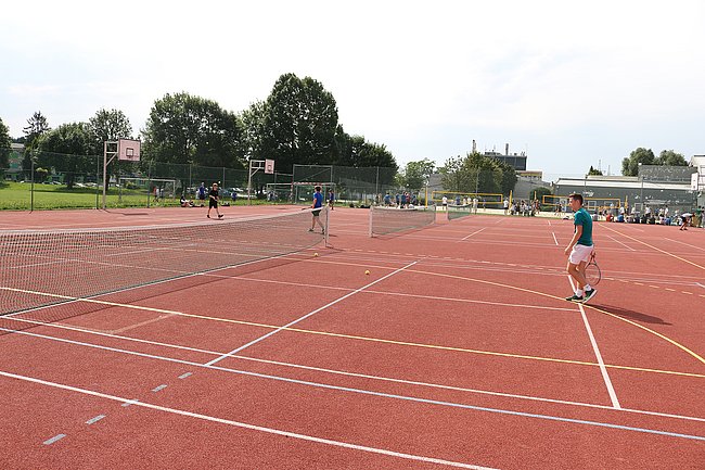 Auf drei Tennisfeldern wurde auf dem HTL-Mehrzwecksportplatz den ganzen Vormittag des ersten Sporttages in einem Champions-Tiebreak-Turnier intensiv gespielt. Alle Teilnehmer konnten mehrere Spiele absolvieren, da alle Plätze ausgespielt wurden.In einem sehr ansprechenden Finale siegte schließlich Julian Simut (2BHEL) vor Maximilian (1CHGT) Fank 10:6, 10:8