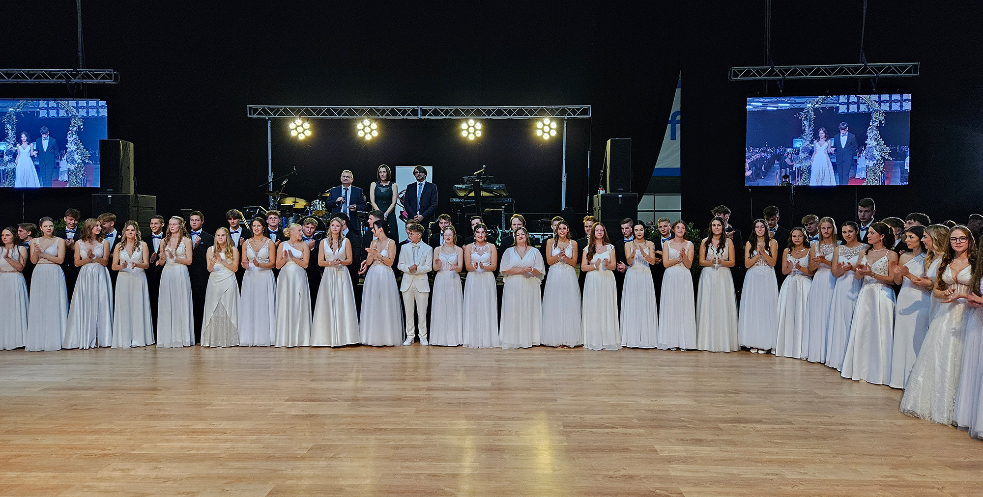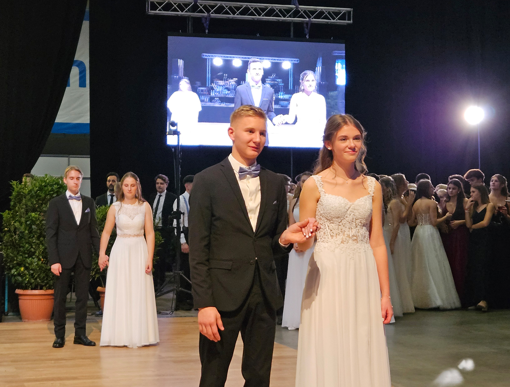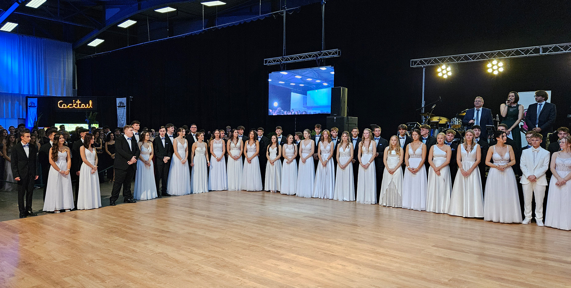 Nach dem Einzug der 63 zukünftigen HTL-Absolventinnen und -Absolventen, den die Klassenvorstände Prof. Eva-Maria Gangoly, Prof. Christoph Schermann und BL Dietmar Wanitsch ankündigten, wurde der festliche Abend mit einer mehrteiligen Polonaise eröffnet. Nach der Begrüßung durch Direktor Wilfried Lercher und Abteilungsvorständin Ulrike Hartler sorgte die Band „Skylight“ für ausgezeichnete Musik und gute Stimmung.