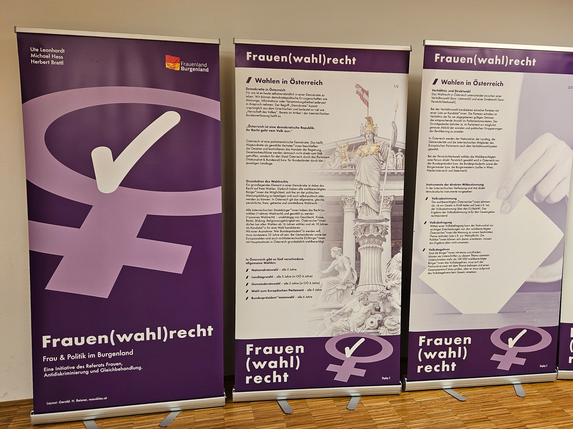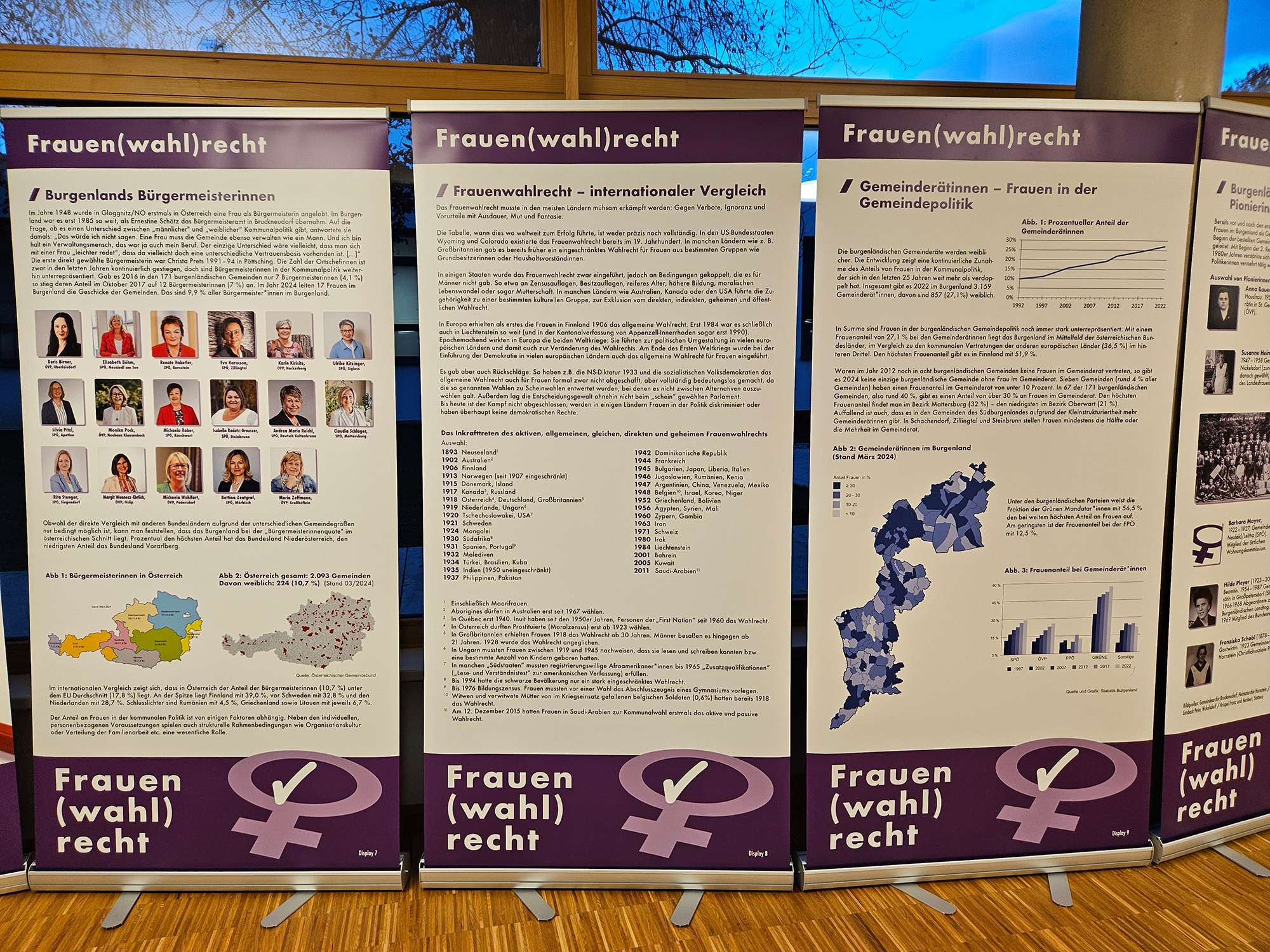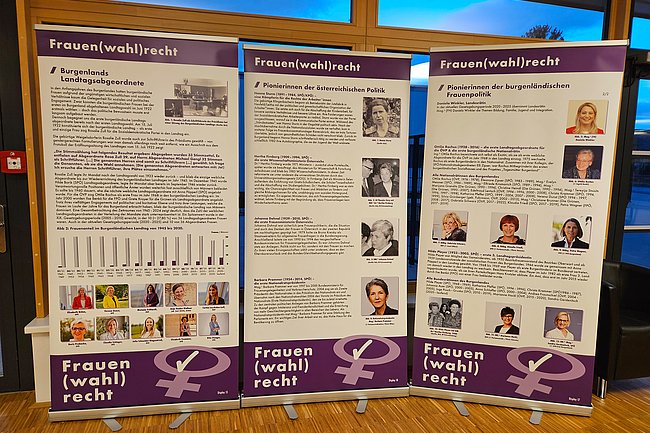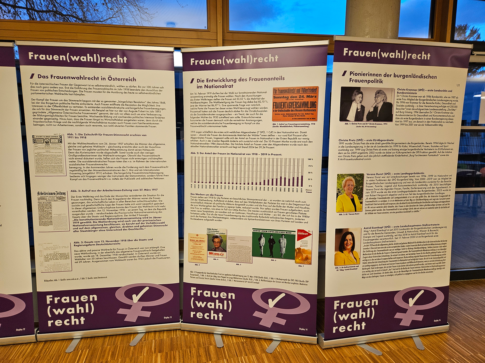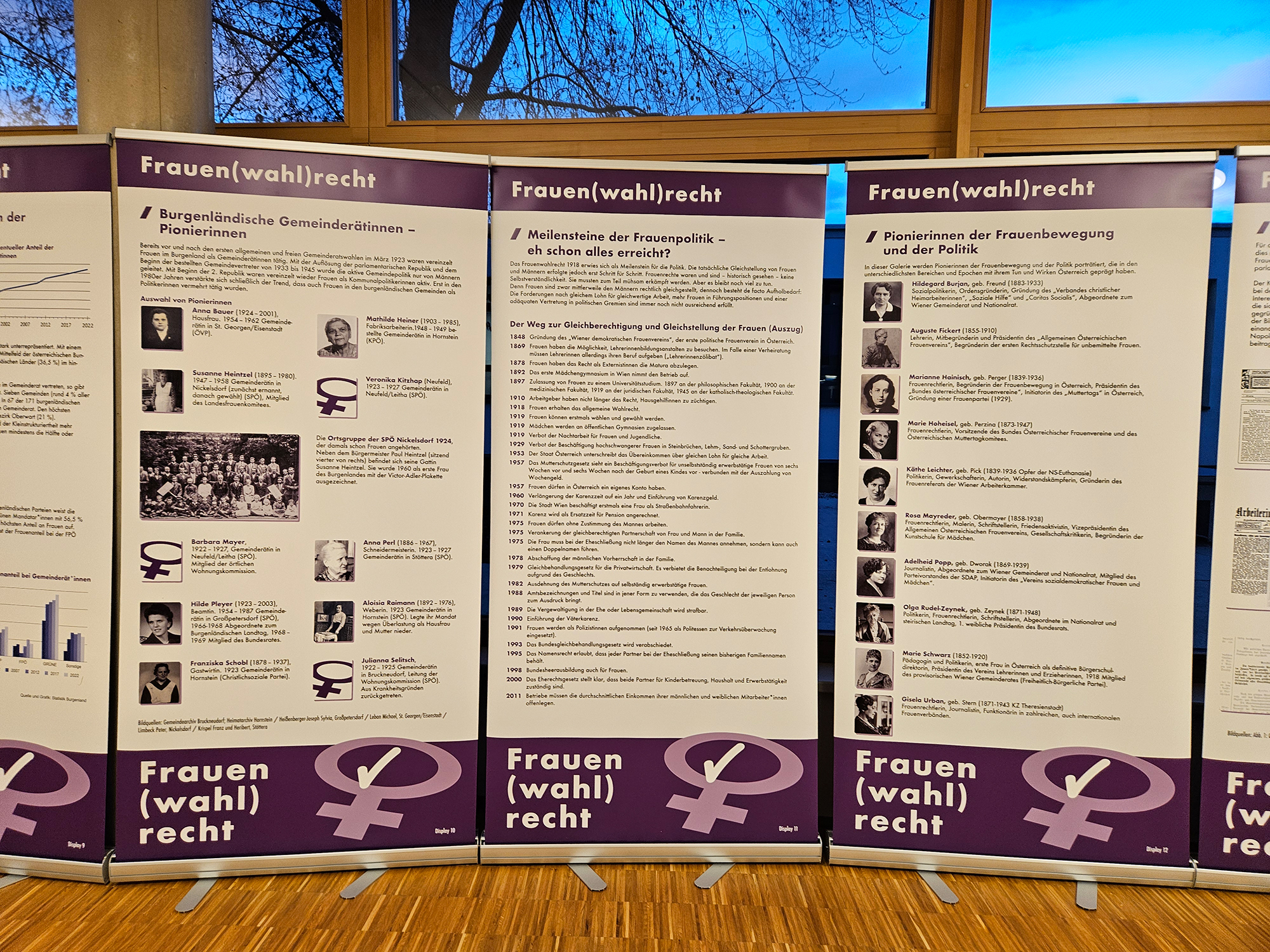Dieses Jahr wurde die Wanderausstellung aktualisiert und neu eröffnet. Sie zeigt Pionierinnen der Frauenbewegung und Politik, beleuchtet die Entwicklung des Frauenanteils im Nationalrat und würdigt diejenigen Frauen, die sich in der Politik engagieren.