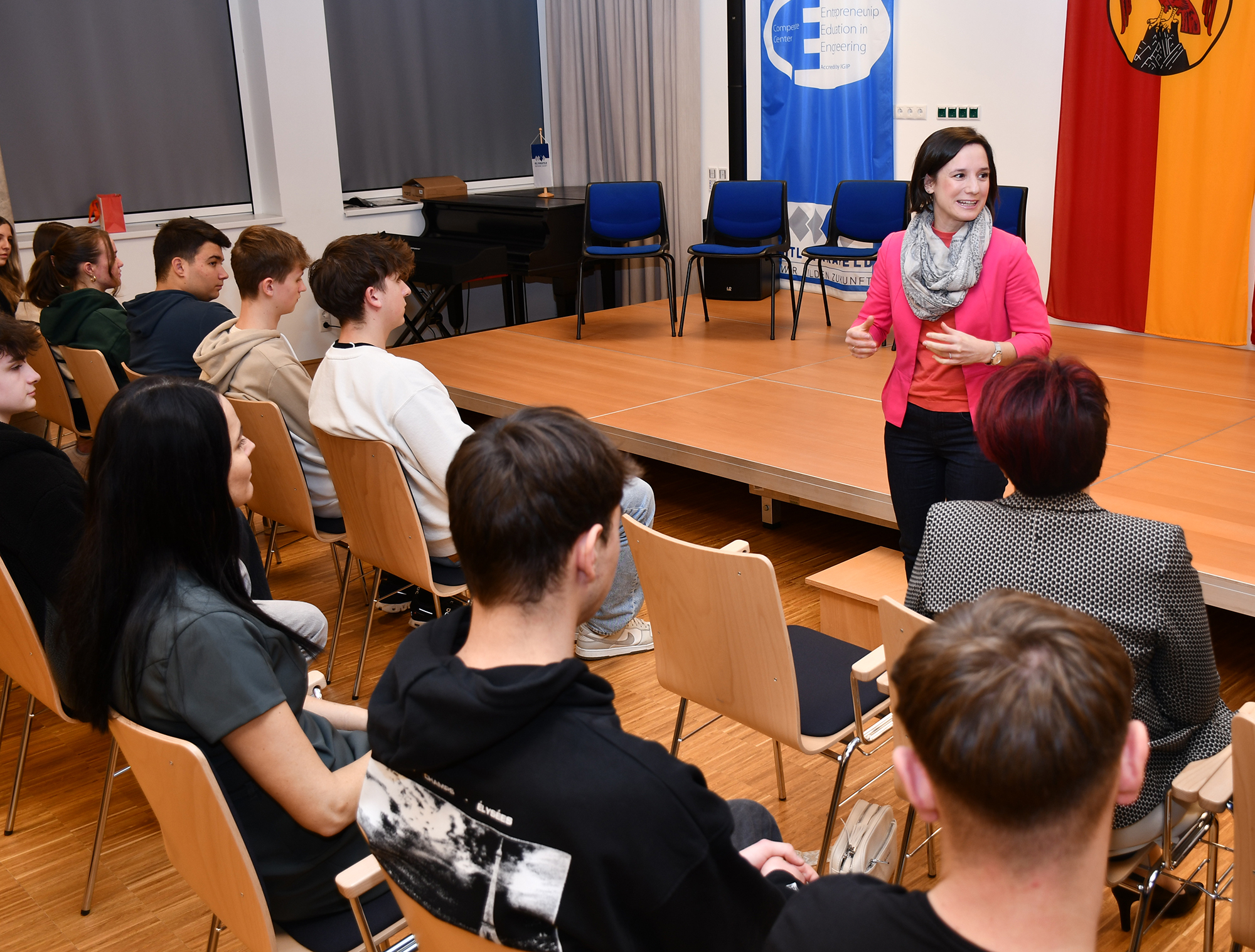 Tanja Stöckl, Regionalstellenobfrau der Wirtschaftskammer, freute sich über die Einladung zur Geschenkübergabe. „Die HTL Pinkafeld hat Vorbildwirkung. Die jungen Technikerinnen und Techniker, die hier ausgebildet werden, lernen, dass Leistung sich lohnt. Solche motivierten Leute brauchen wir in der Wirtschaft“, sagte sie. Aniko Benkö, Geschäftsführerin der Industriellenvereinigung Burgenland, wünschte den Jugendlichen weiterhin viel Erfolg in der Schule und später im Beruf: „Die Bereitschaft junger Menschen sich auf Innovationen einzulassen ist an dieser Schule merkbar. Das ist eine gute Voraussetzung für die Zukunft.“