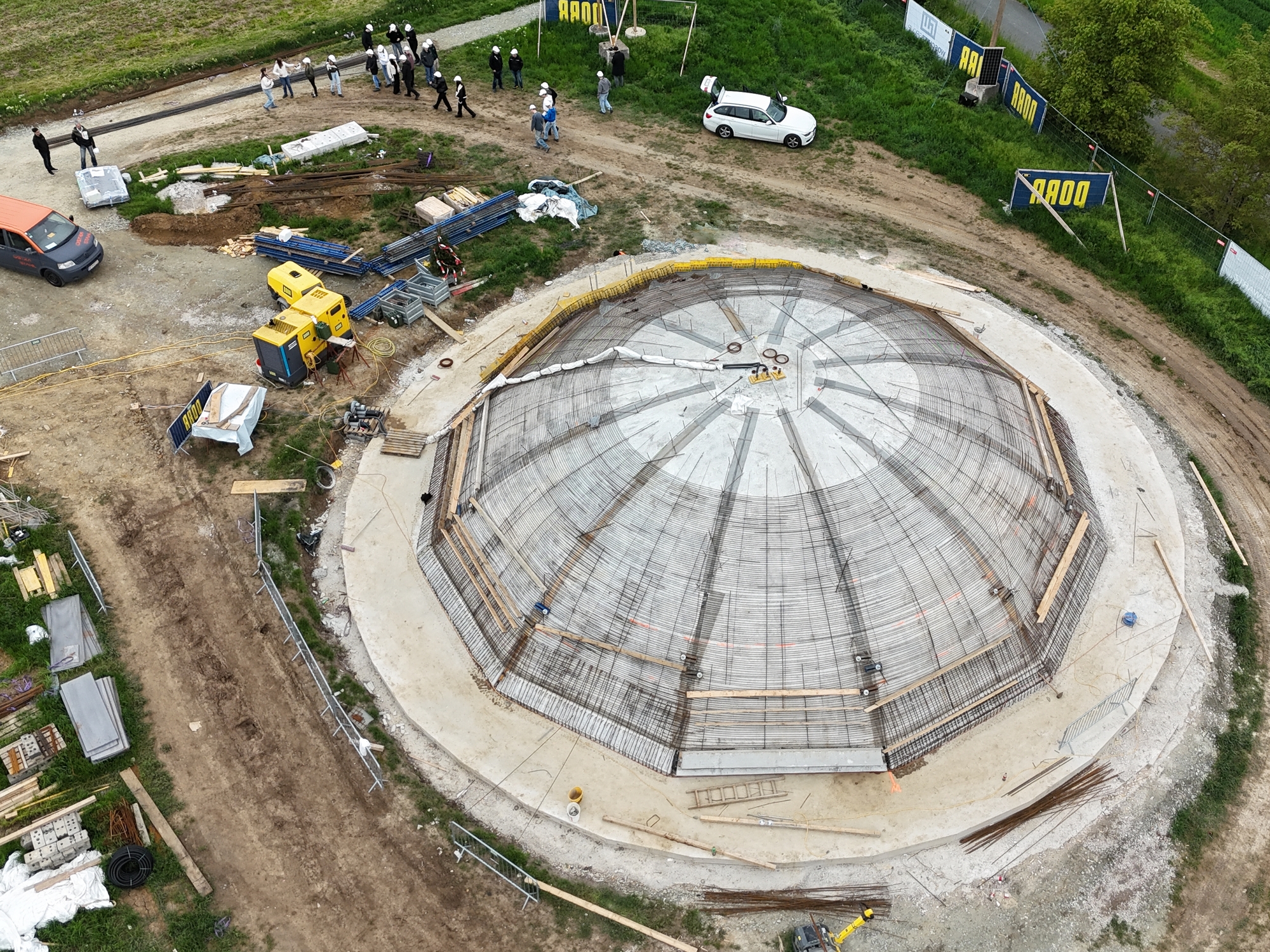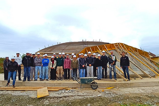 Das Projekt wird in einer neuen Bauweise für Schalentragwerke umgesetzt, die auf eine pneumatische Schalung basiert. Weiters wurde leichtere Bewehrung mit Basaltinhalten eingesetzt.