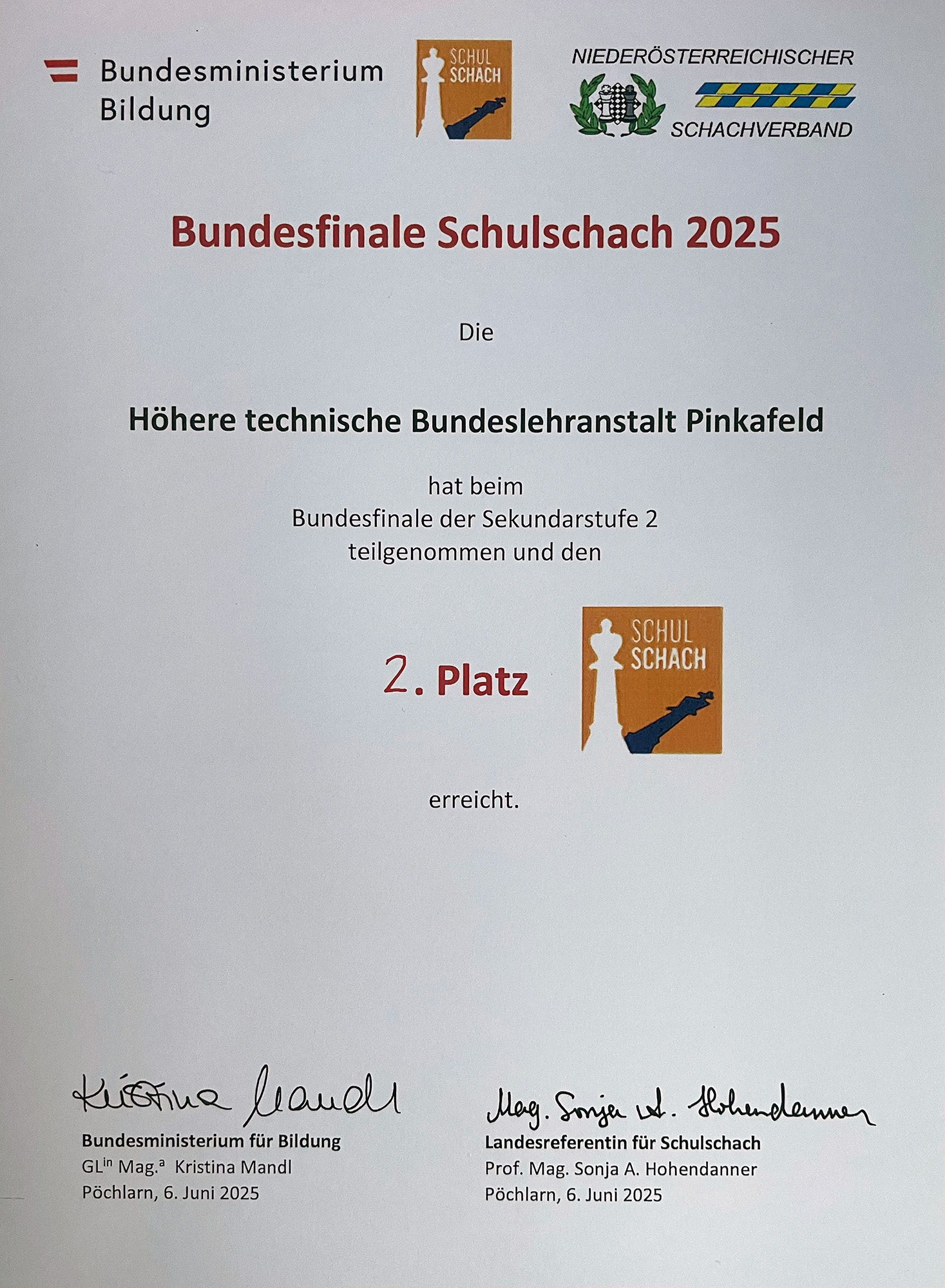 Nach der souveränen und erfolgreichen Titelverteidigung bei der Landesmeisterschaft konnte das HTL-Schachteam nun auch bei der heurigen Bundesmeisterschaft in Pöchlarn (Niederösterreich) groß aufzeigen und ihr Können unter Beweis stellen!