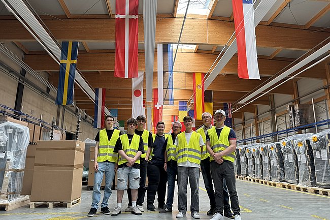 Im Anschluss daran wurde die Fertigung besichtigt. Dabei konnten die Schüler sämtliche Produktionsschritte – vom Zuschnitt bis zur Endkontrolle – direkt miterleben und sich ein Bild vom hohen Qualitätsanspruch des Unternehmens machen.