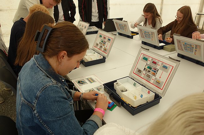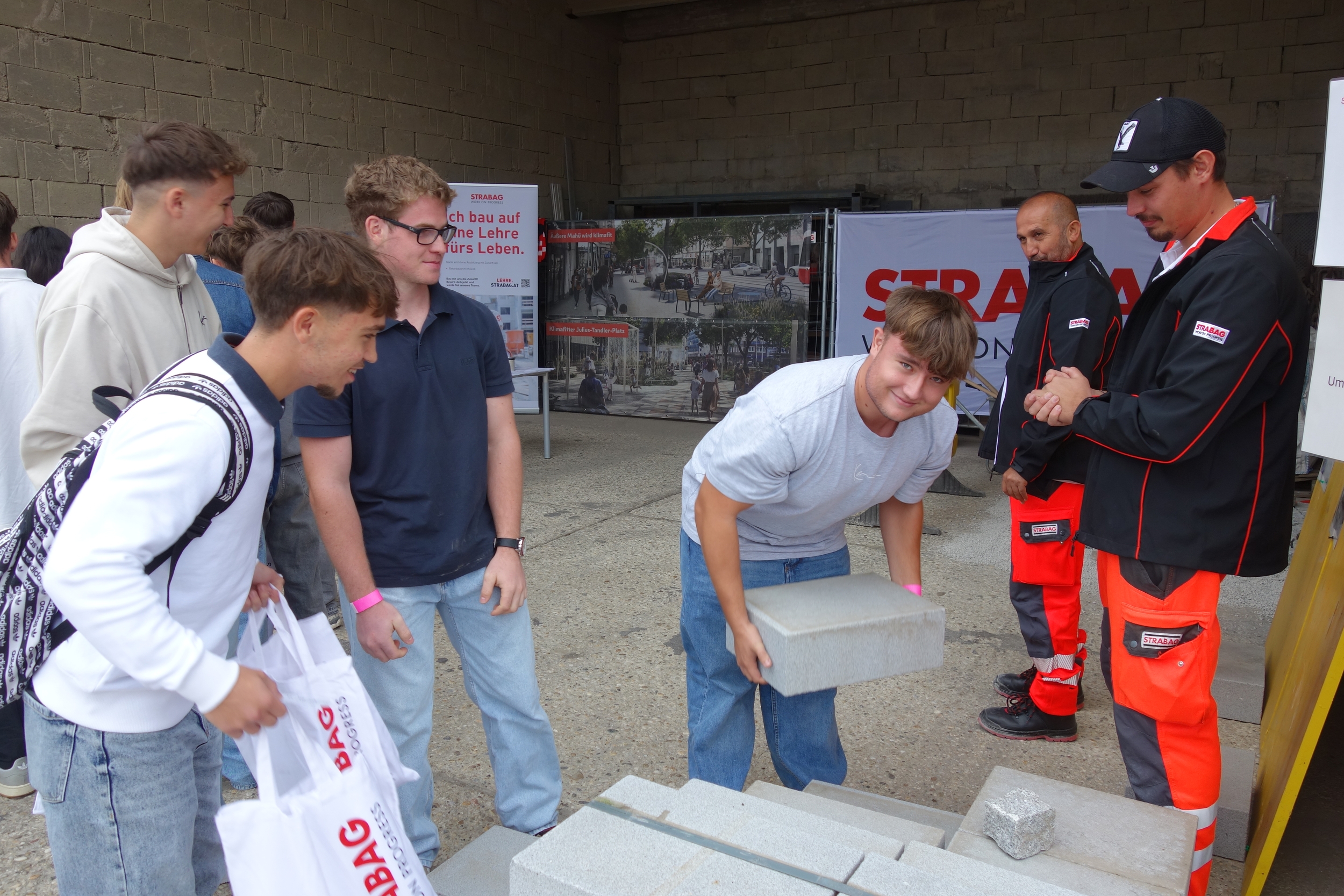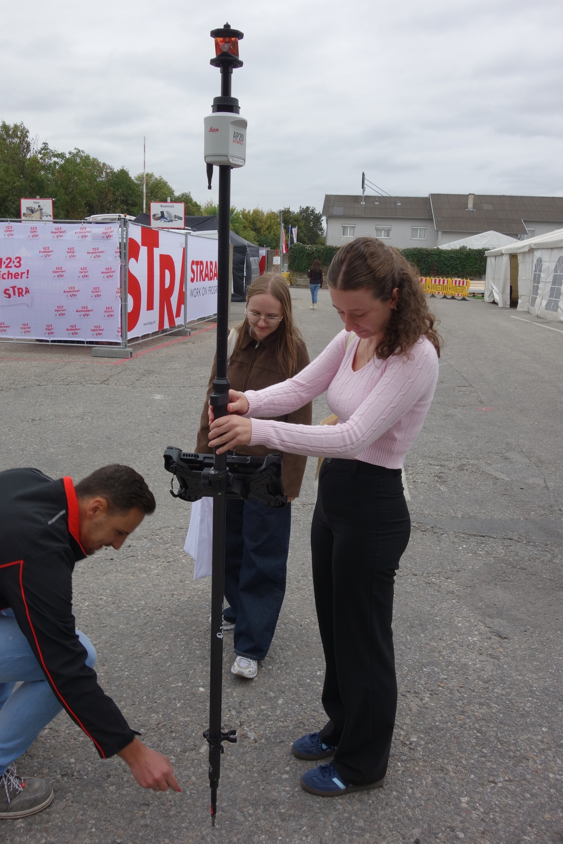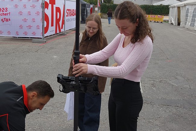 An zahlreichen Mitmachstationen bot sich den Schülerinnen und Schülern die Gelegenheit, verschiedene Arbeitsfelder des Bauwesens kennenzulernen. Themen wie beispielsweise Platzgestaltung mit Pflaster und Asphalt, Absteckung mittels Tachymeter, der Einsatz von Drohnen und digitalen Medien zur Vermessung und Dokumentation sowie die Arbeitsvorbereitung zur Bereitstellung von GPS-Daten für Baggerarbeiten wurden anschaulich vermittelt. An einem Simulator konnten sich die Teilnehmerinnen und Teilnehmer dann selbst an den Aushubarbeiten versuchen.
