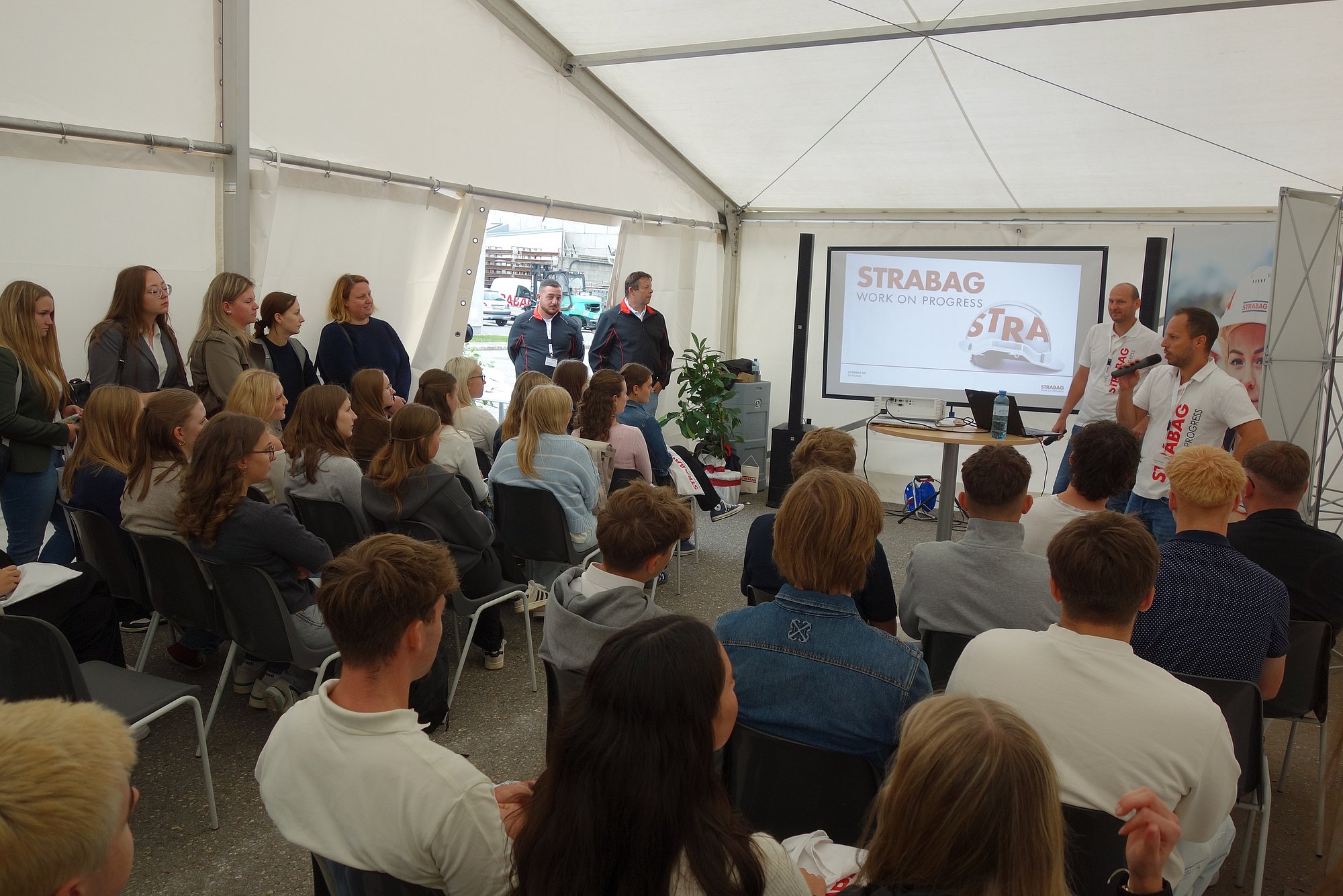 Kürzlich besuchten die vierten Klassen der Bauabteilung den Tag der offenen Tür der Firma STRABAG in der Zweigniederlassung Gerasdorf bei Wien. Die Schülerinnen und Schüler erhielten dabei spannende Einblicke in die vielfältigen Tätigkeitsbereiche eines der größten Baukonzerne Europas.