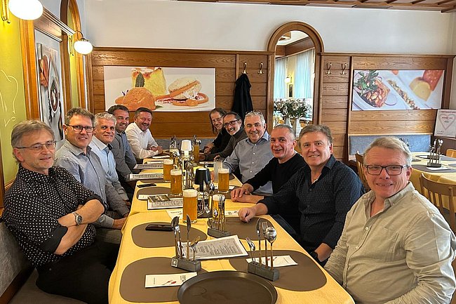 Am Vormittag gab es bei einem Aperitif und Brötchen ein fröhliches Wiedersehen und viel Smalltalk. Besonders begrüßen durften wir auch unseren Klassenvorstand DI Wolfgang Kern, AV Rudi Hochwarter und einige Lehrer.