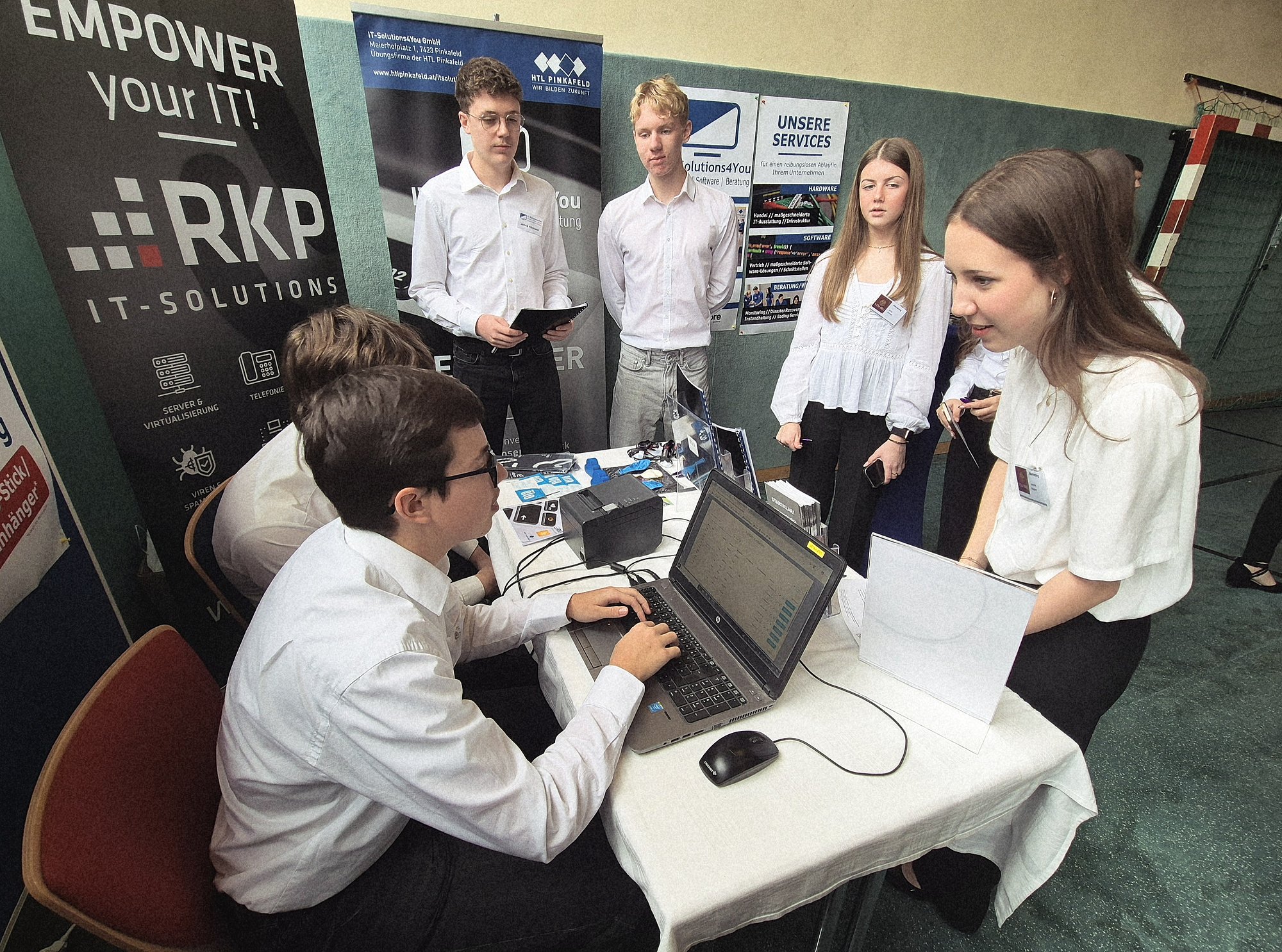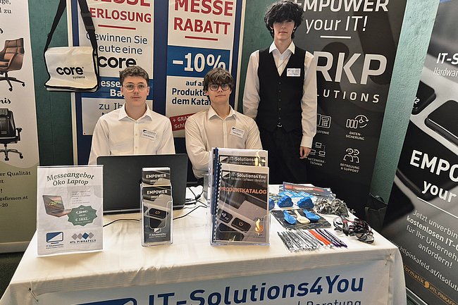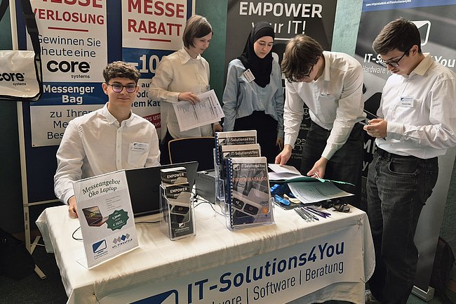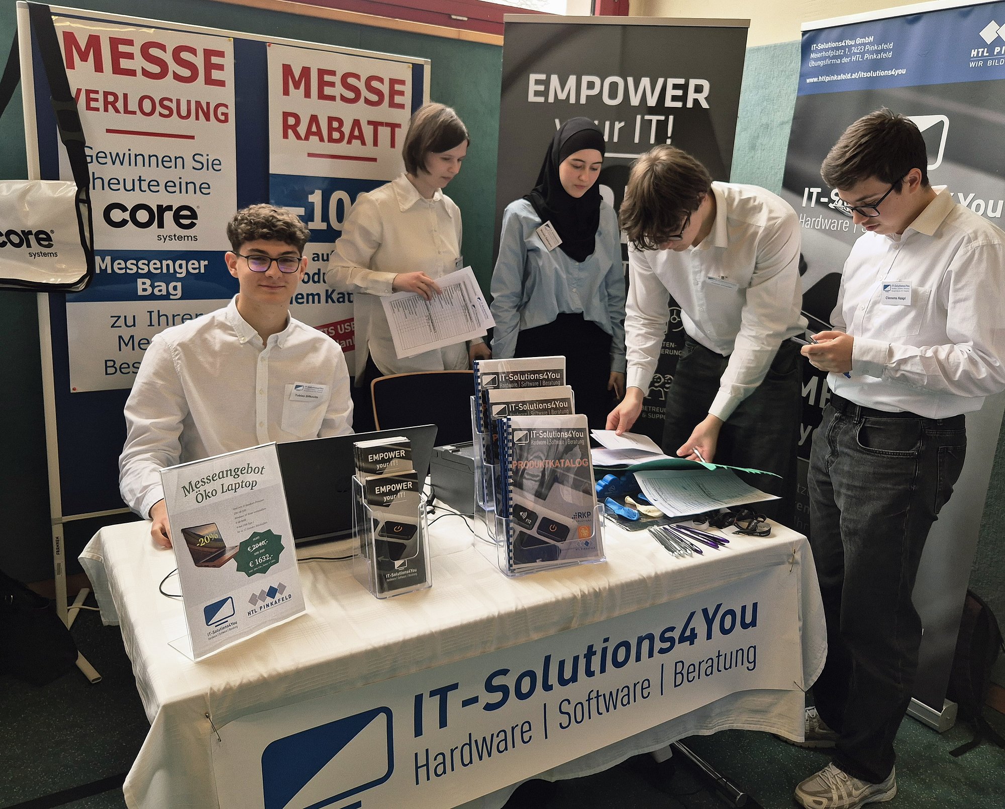 Das zwölfköpfige Schüler*innen-Team der IT-Solutions4You GmbH stellte ein vielfältiges Angebot aus dem Hard- und Softwarebereich vor. Gemeinsam mit den betreuenden Lehrenden gelang es, zahlreiche Interessierte zu überzeugen und mehrere Kaufabschlüsse zu erzielen. Der Messeauftritt zeigte eindrucksvoll, wie praxisnah unternehmerisches Denken an der HTL Pinkafeld vermittelt wird.