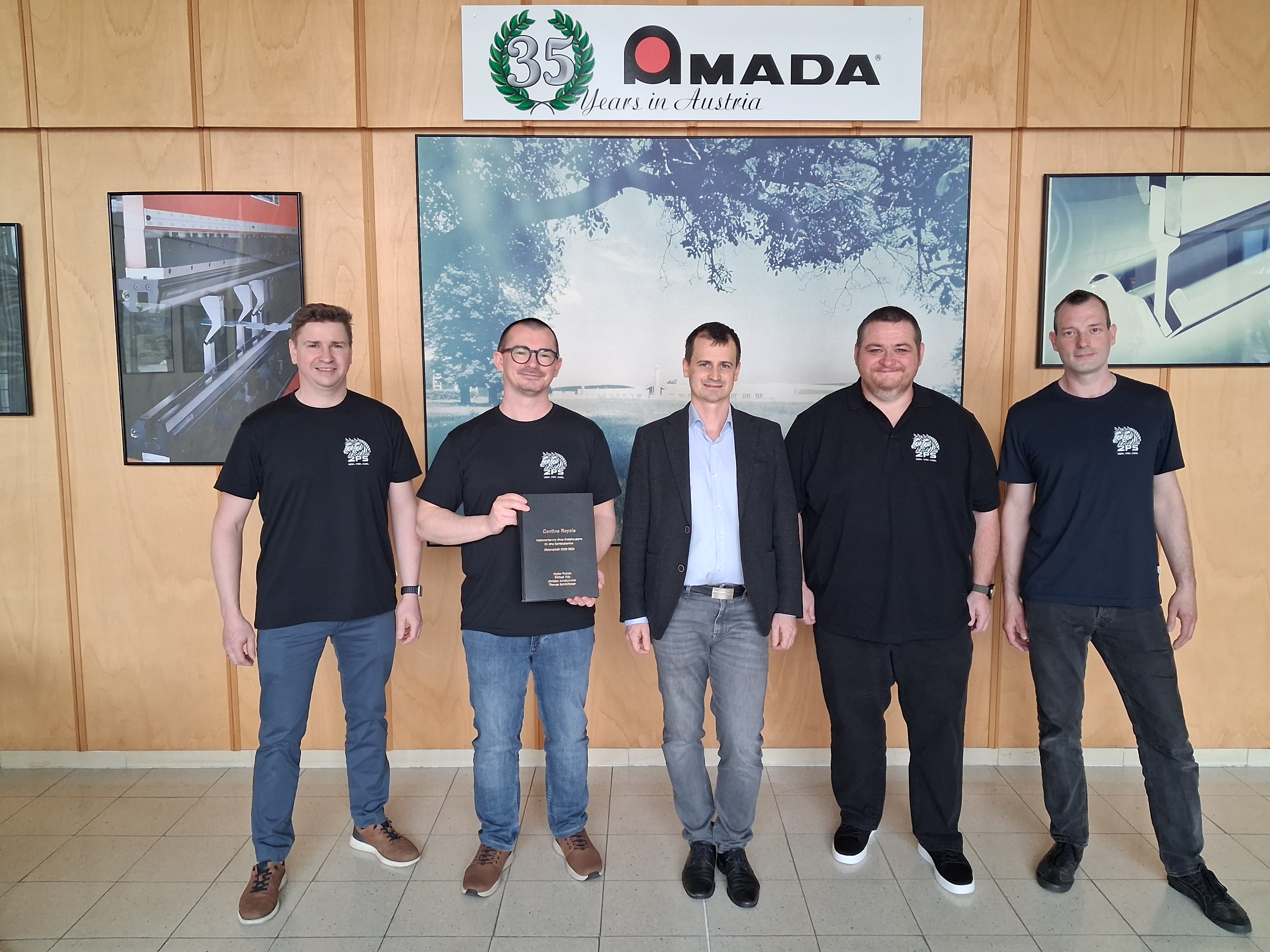 Ende März übergab das Projektteam „2PS“, bestehend aus den Informatik-Maturanten (Kolleg für Berufstätige) Marko Prokain, Michael Putz, Christian Schaberreiter und Thomas Schmidbauer, die Diplomarbeit „Cantine Royale“ erfolgreich an den Auftraggeber AMADA Austria GmbH. Betreut wurde das ambitionierte Softwareprojekt an der HTL Pinkafeld von Prof. Mag. Heinz Bundschuh und Prof. Dipl.-Inf. David Zach.