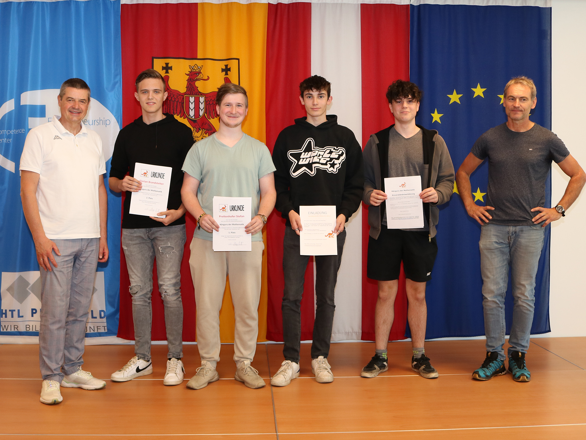 Am 21. Mai wurden bei der Landessiegerehrung in Oberpullendorf die besten Mathematikerinnen und Mathematiker des Burgenlands von Schulqualitätsmanager Franz Bock mit Urkunden und Sachgeschenken geehrt. Eingeladen dazu waren auch mehrere Schülerinnen und Schüler der HTL Pinkafeld.