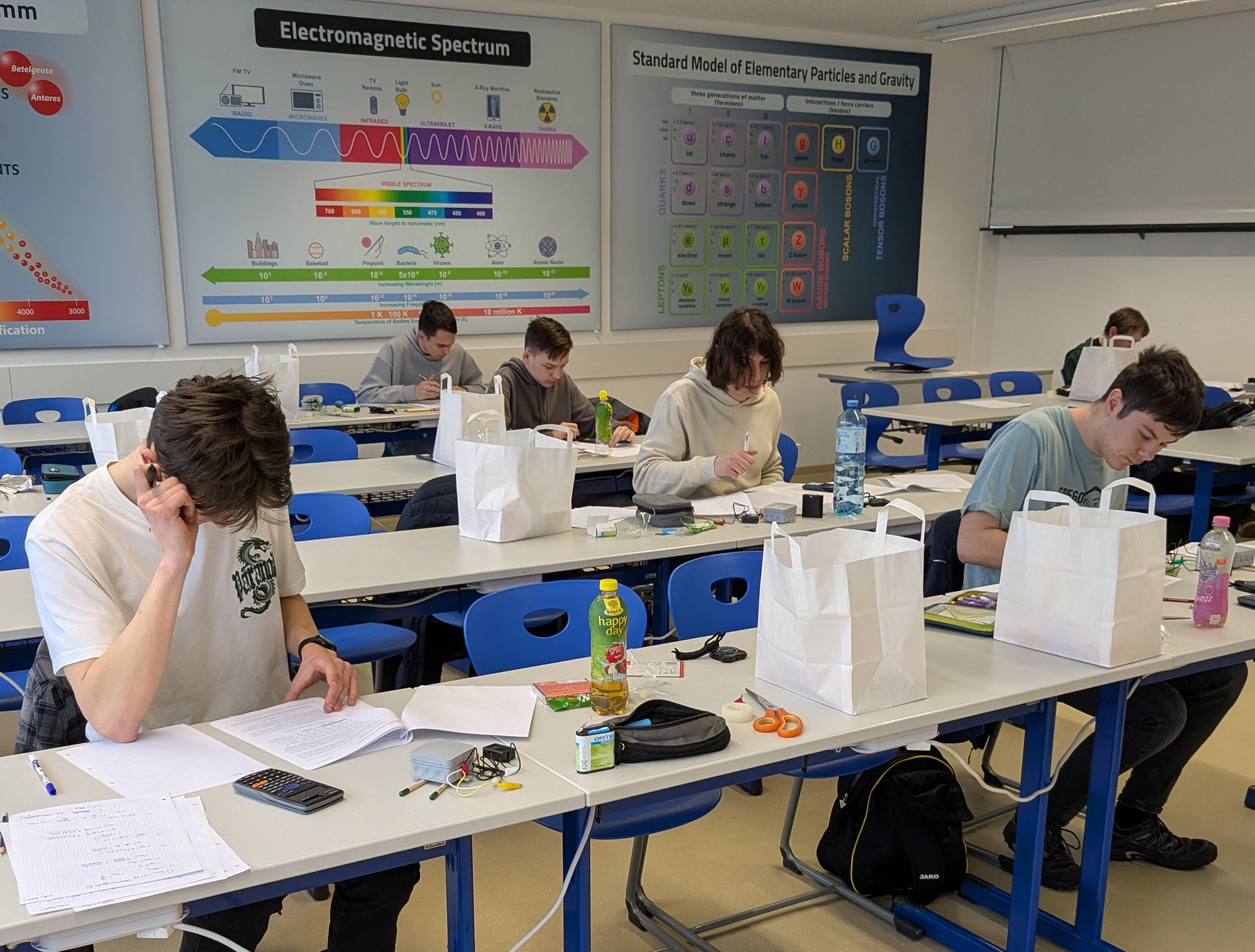 Die Teilnehmer hatten insgesamt vier Stunden Arbeitszeit, um die komplexen Problemstellungen zu lösen. Neben den theoretischen Aufgaben stand auch ein experimenteller Teil auf dem Programm: Hier galt es, den Wärmedurchgangskoeffizienten einer Kunststoffdose präzise zu bestimmen – eine Herausforderung, die sowohl genaues Arbeiten als auch physikalisches Verständnis erforderte.