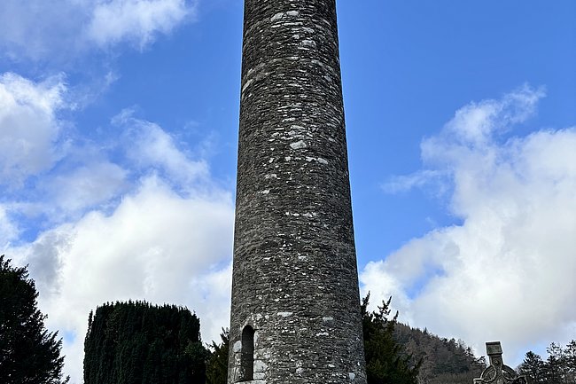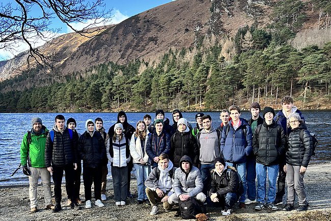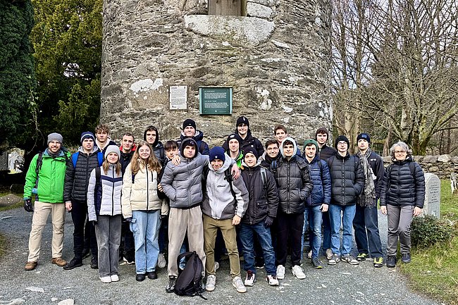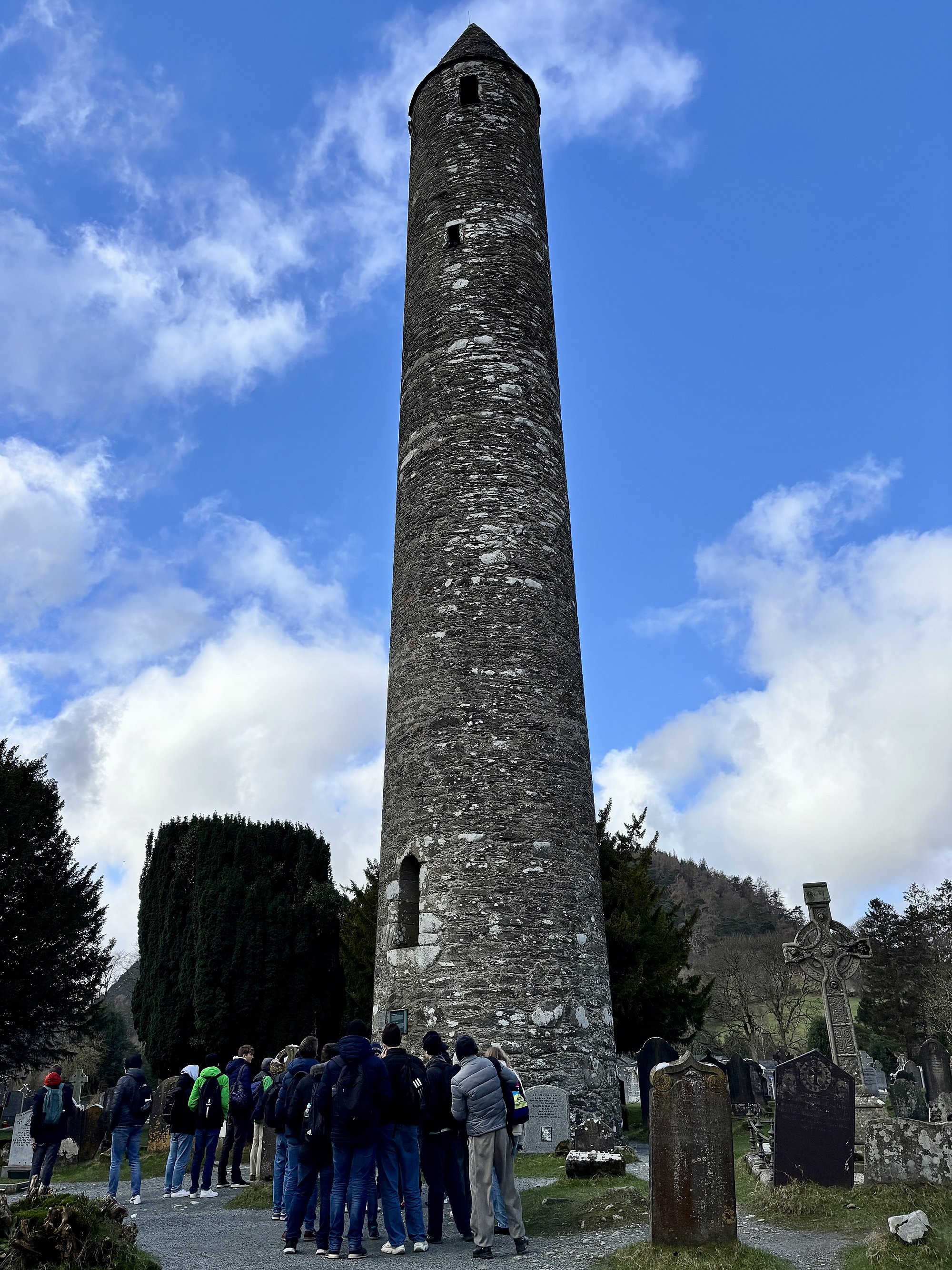 Ein Highlight der Woche war der Ganztagesausflug nach Glendalough in den Wicklow Mountains. Bei gutem Wetter besuchte die Klasse die Ruinen der von Saint Kevin gegründeten Klosteranlage mit dem mächtigen Bell Tower und wanderte zu den beiden Seen Lower und Upper Lake.