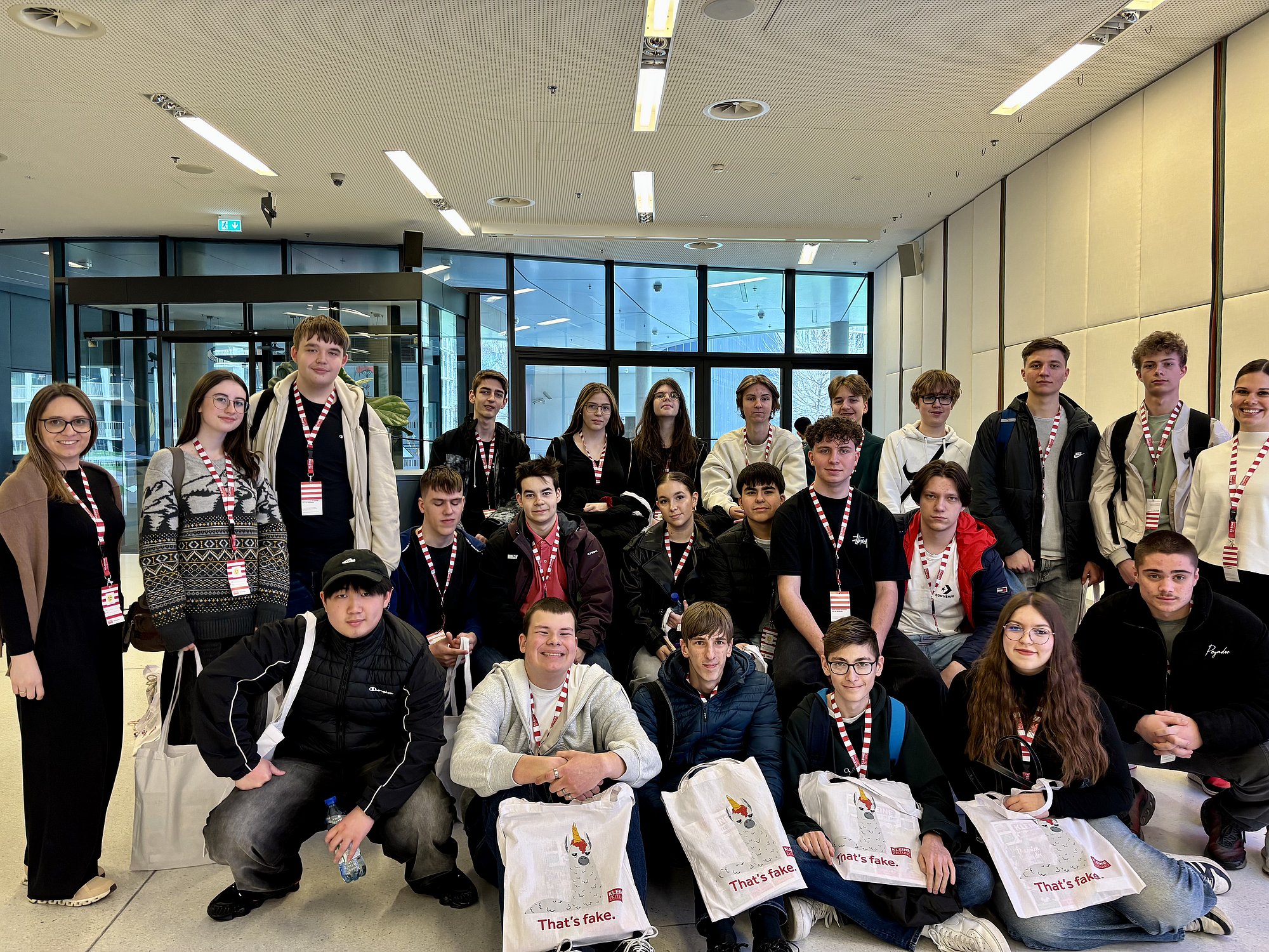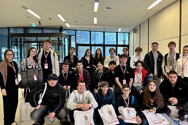 Zuerst stand ein Besuch des modernen Styria Media Centers am Programm, wo die Schüler/innen eine Führung durch die Redaktion der Kleinen Zeitung erwartete. Im Laufe des Vormittags erhielt die Gruppe einen Einblick in die Arbeit von Journalist/innen, gestaltete selbst ein digitales Titelblatt und durfte abschließend einen Blick in den 3000 m2 großen Newsroom werfen. Auch die Relevanz von Journalismus in der Demokratie und die Gefahr von Fake News wurden diskutiert, bevor schließlich Erinnerungsfotos in der hauseigenen Fotobox gemacht werden durften.
