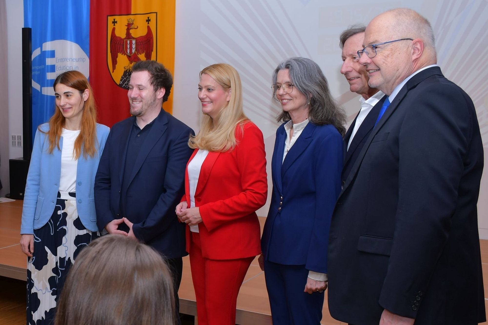 Abteilungsvorständin Ulrike Hartler freute sich über die zahlreichen Gäste aus Wirtschaft, Industrie, Politik und Bildungswesen, ehemalige LehrerInnen und Absolventen der Abteilung. Sie zog Bilanz über die Arbeit an ihrer Abteilung in Gegenwart und Vergangenheit und bedankte sich für die zahlreichen langjährigen Kooperationen. Neben Präsentationen herausragender Diplomarbeiten und Grußworten von AbsolventInnen zum Jubiläum fand auch eine Talkrunde von Schülerinnen und Schülern mit Richard Woschitz, Unternehmer im Bereich Tragwerksplanung und Baumanagement, Architektin Christina Lang, Architekt Günther Klein und Stahlbau-Unternehmer Matthias Unger statt. Dabei ging es um die Zukunft des Bauens im Blick auf aktuelle Themen und mögliche Veränderungen in der Branche. „50 Jahre Bauabteilung stehen für Innovation, Engagement und eine fundierte Ausbildung, die unsere Absolventinnen und Absolventen optimal auf die Anforderungen der Bauwirtschaft vorbereitet“ resümierte Ulrike Hartler und bedankte sich für die vielen guten Wünsche für eine weiterhin solide Arbeit an der Bautechnik-Abteilung der HTL Pinkafeld.