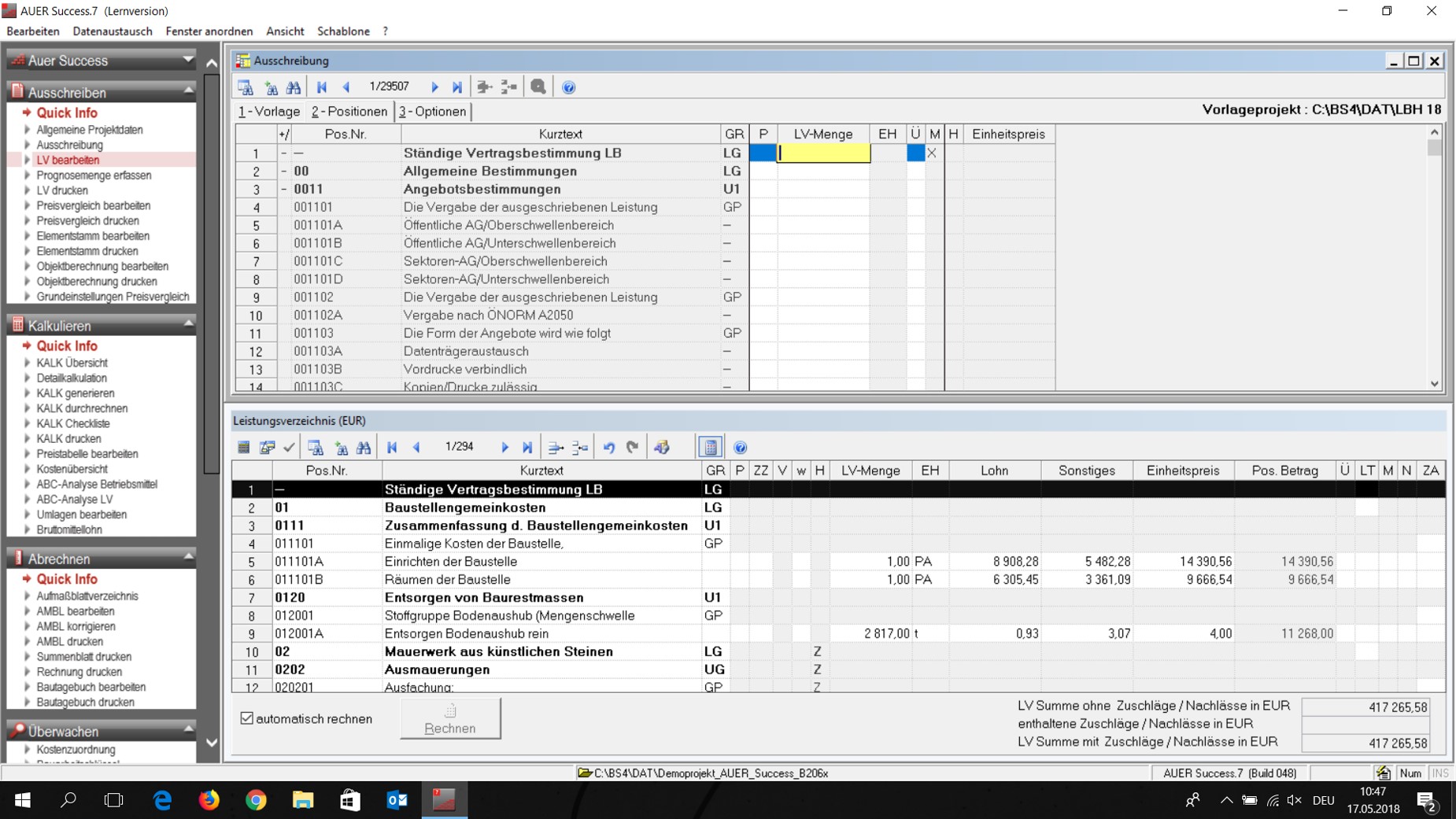 Die Schülerinnen und Schüler besitzen die Fähigkeit, erforderliche Baugeräten, Grundlagen der Kostenermittlung (normgemäße Ermittlung von Mengen und Massen, Erstellen eines Leistungsverzeichnisses, bis zur Auftragserteilung an Firmen) zu erfassen.