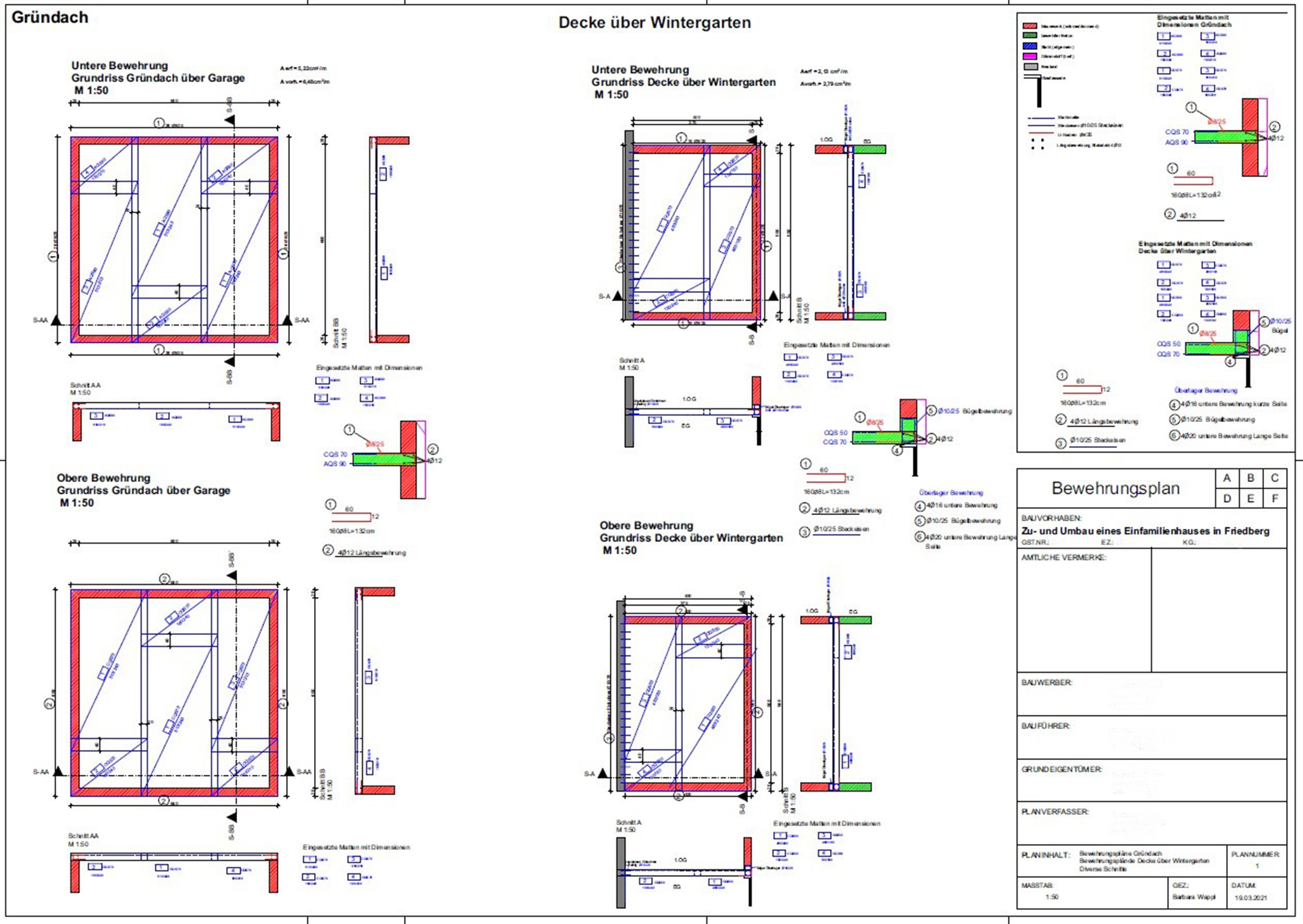Die Bauaufnahme inklusive Bestandsplan, der Entwurf des Zu- und Umbaues, die Einreichplanung, die Erstellung eines Energieausweises, die statische Berechnung der Zu- und Umbaumaßnahmen, sowie die Erstellung eines Bewehrungsplanes waren Teilaufgaben, die es zu bearbeiten gab.