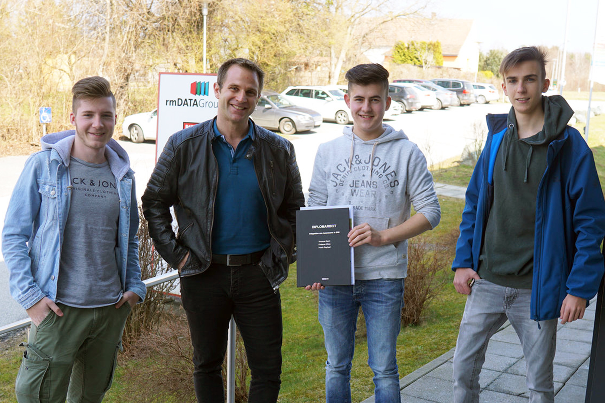 Die Bautechnik-Maturanten Kevin Kronaus, Kilian Piribauer und Raphael Posch beschäftigten sich in ihrer Diplomarbeit „Integration von Laserscans in BIM“ mit Building Information Modelling (BIM), das von rmDATA mit der Software 3DWorx unterstützt und von Thomas Pinter mitbetreut wurde. Projektbetreuer von Seiten der Schule war Prof. Wolfgang Leeb. Das Ergebnis ihrer Diplomarbeit ist ein umfassender Bestandsplan, eine kleine Bestandsanalyse und ein 3D-BIM-Modell des Bauhofes der HTL Pinkafeld.