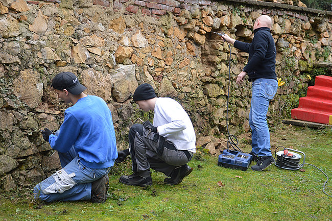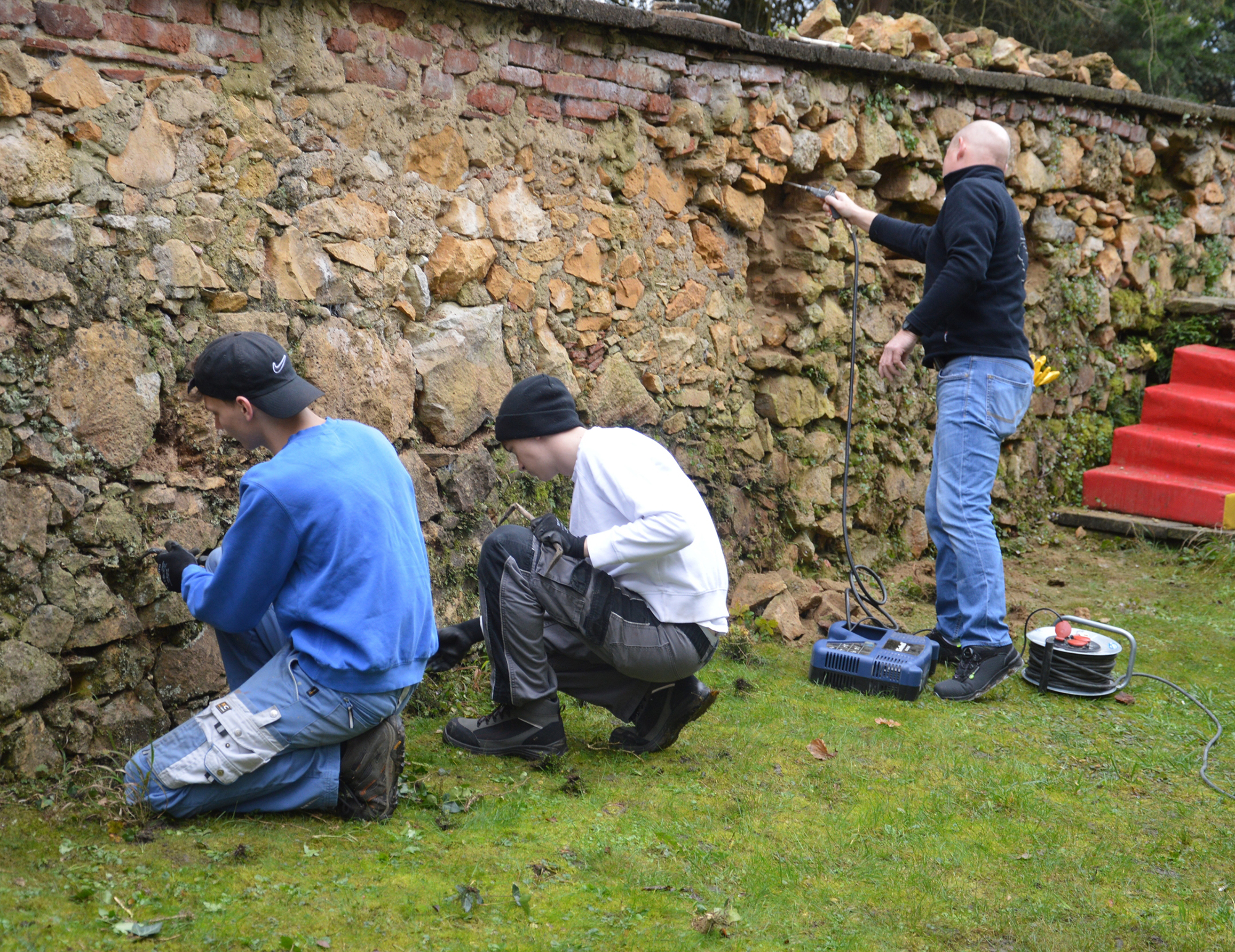 Wer hätte sich gedacht, dass einmal die drei Bautechnik-Fachschüler der HTL Pinkafeld Richard Heil, Matthias Krutzler und David Zingl über 350 Jahre später von Februar bis Mai 2021 selbst Hand anlegen, um die Mauer vom Einsturz zu bewahren.