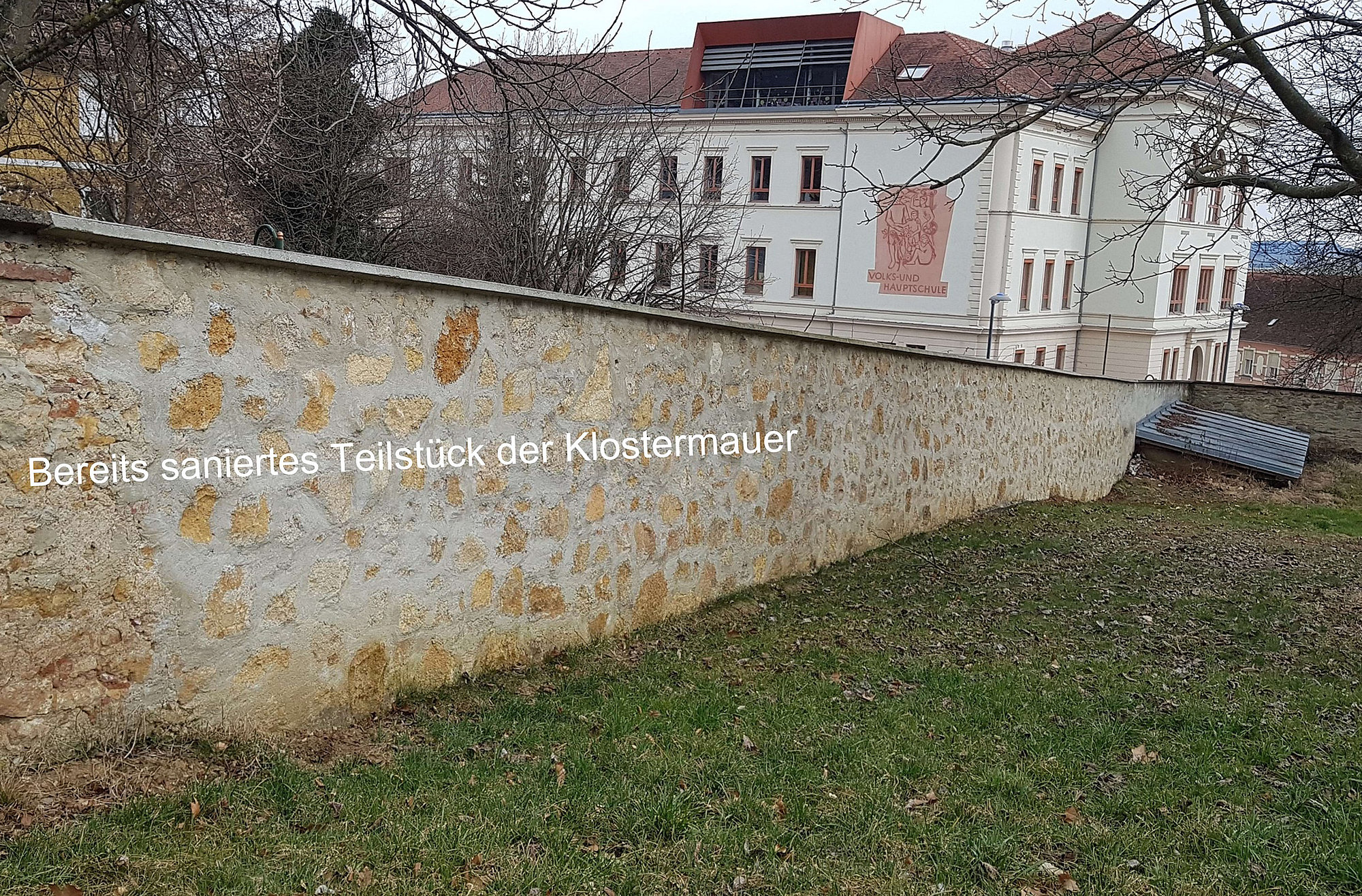 Unter Anwendung traditioneller Bauwerkskunst, die vom Denkmalschutzamt begleitet wird, soll die gesamte Klostermauer mit einer Bestandslänge von rund 350 m in den desolaten Bereichen revitalisiert werden. Den Grundstein dafür haben die drei HTL-Absolventen trotz Pandemie gelegt. Folgeprojekte unter Mitwirken der HTL Pinkafeld sollen die Mauer Stück für Stück langsam und behutsam sichern, um das wertvolle Kulturgut weitere hunderte Jahre zu erhalten.