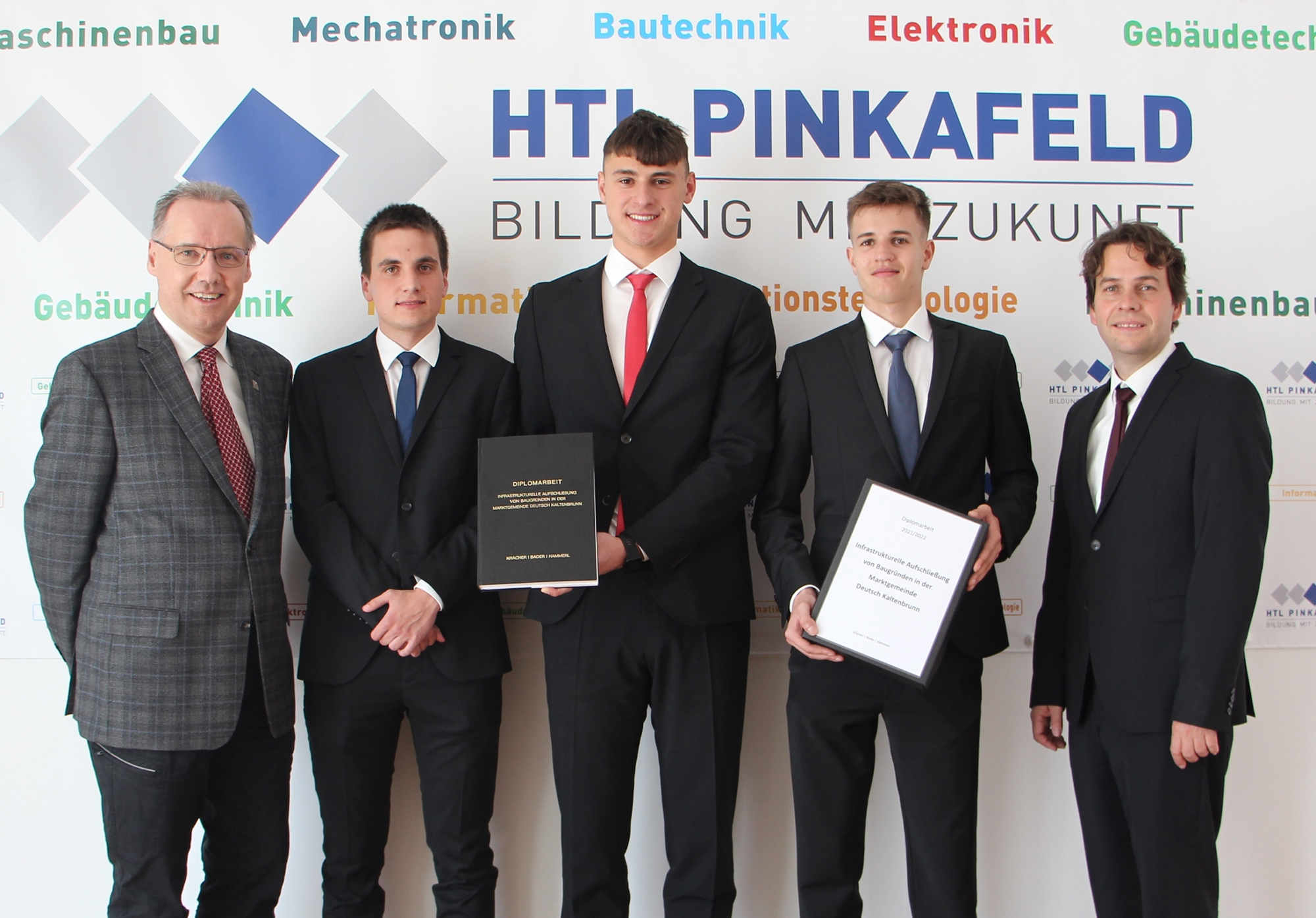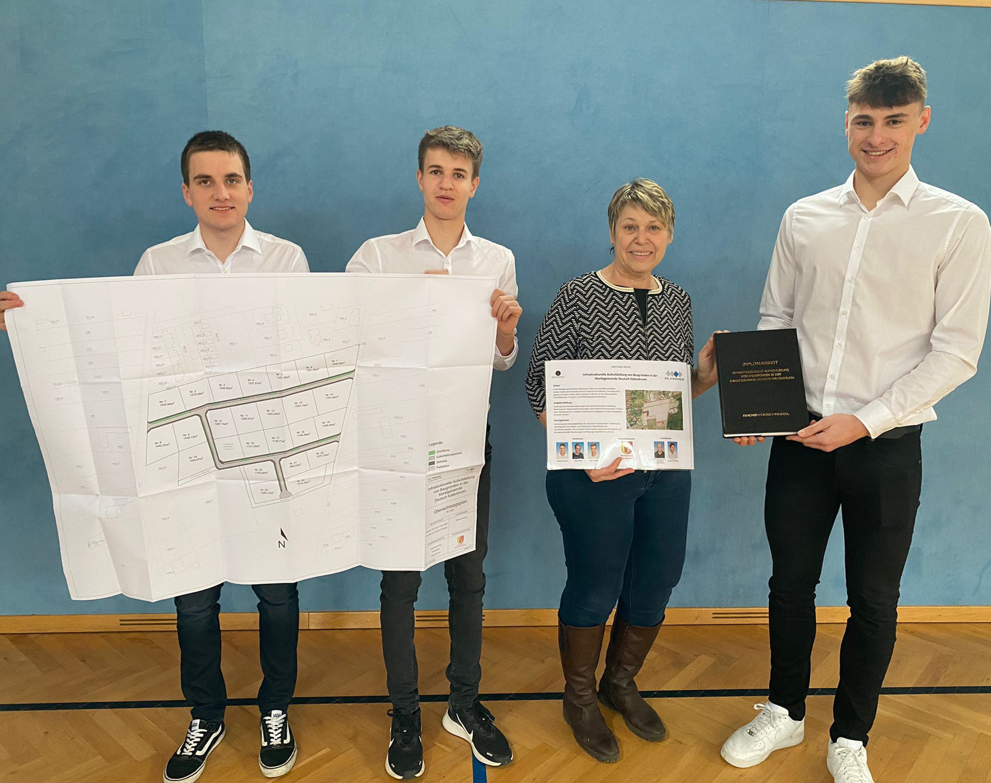 Kürzlich wurde die Bautechnik-Diplomarbeit „Infrastrukturelle Aufschließung von Baugründen in der Marktgemeinde Deutsch Kaltenbrunn“ von den Maturanten Sebastian Kracher, Tobias Bader und Julian Hammerl an die Auftraggeberin Bürgermeisterin Andrea Reichl übergeben. Betreut wurde die Diplomarbeit von OStR Oskar Hable und Prof. Johannes Feichtinger.