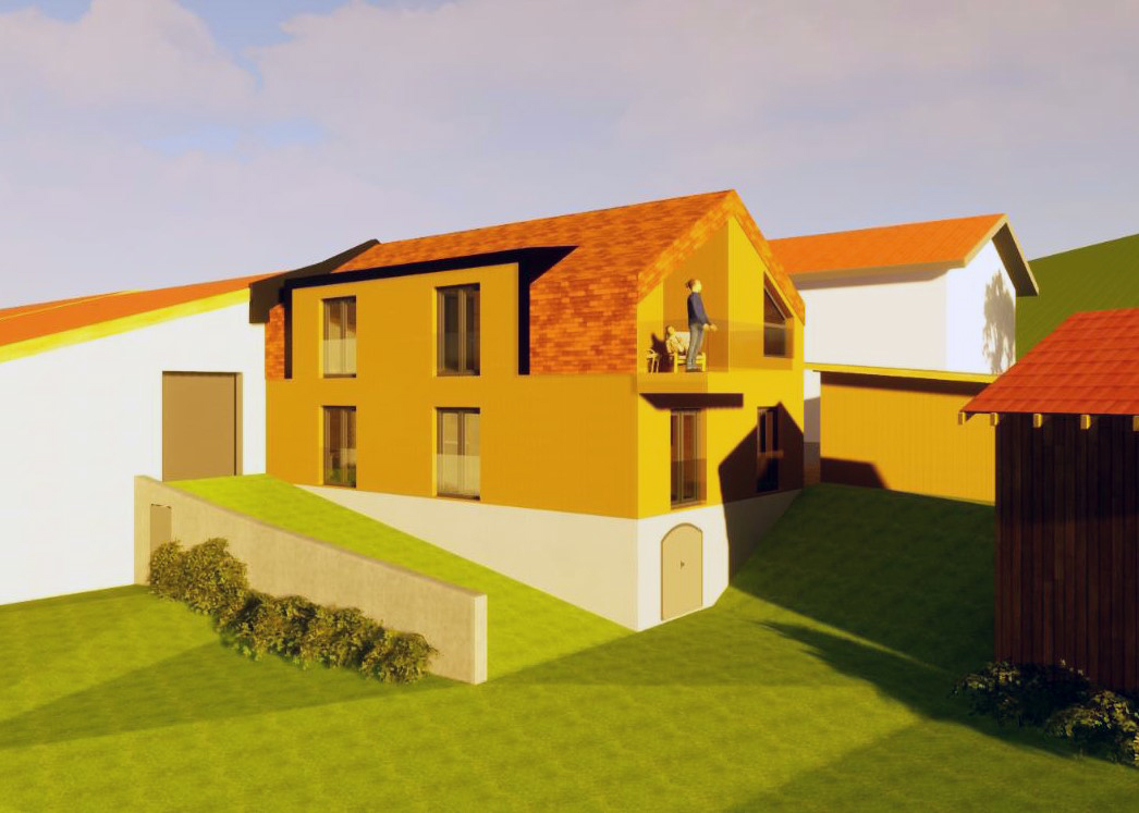 Auf dem landwirtschaftlichen Gut der Familie soll ein bestehendes Nebengebäude aus dem Jahr 1930 durch ein Wohngebäude in nachhaltiger Holzmassivbauweise ersetzt werden. Bei der Planung des Neubaus wurde Wert auf eine passende Einbindung in die bestehende Gebäudestruktur, sowie auf eine architektonisch ansprechende Gestaltung gelegt.