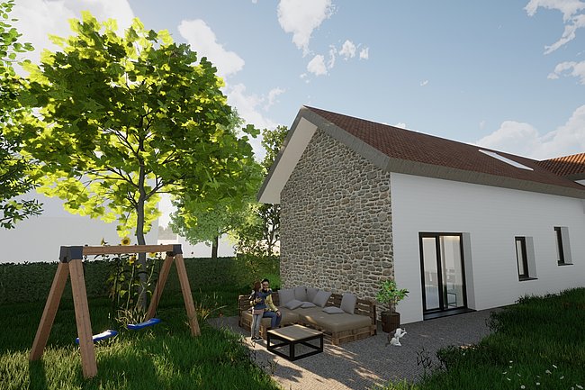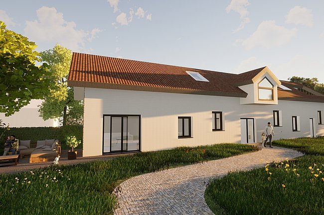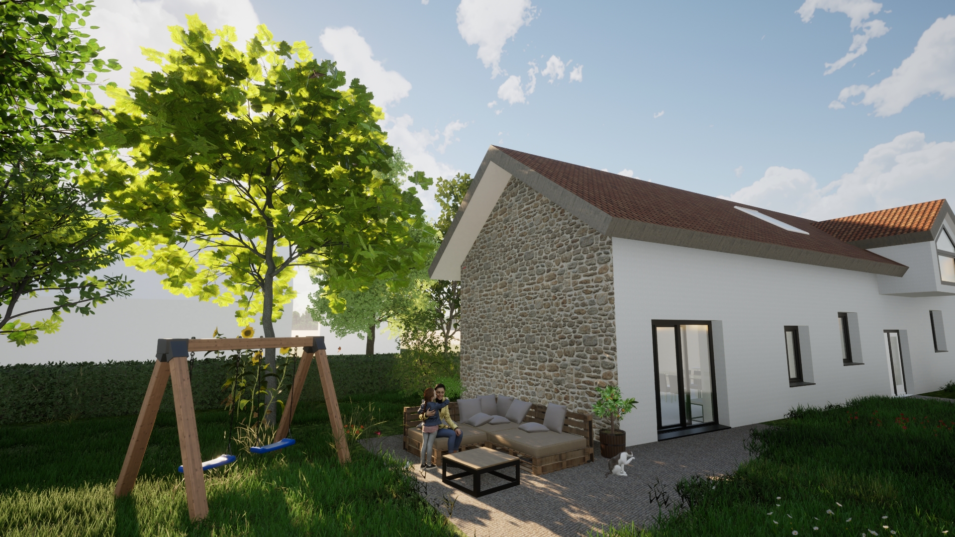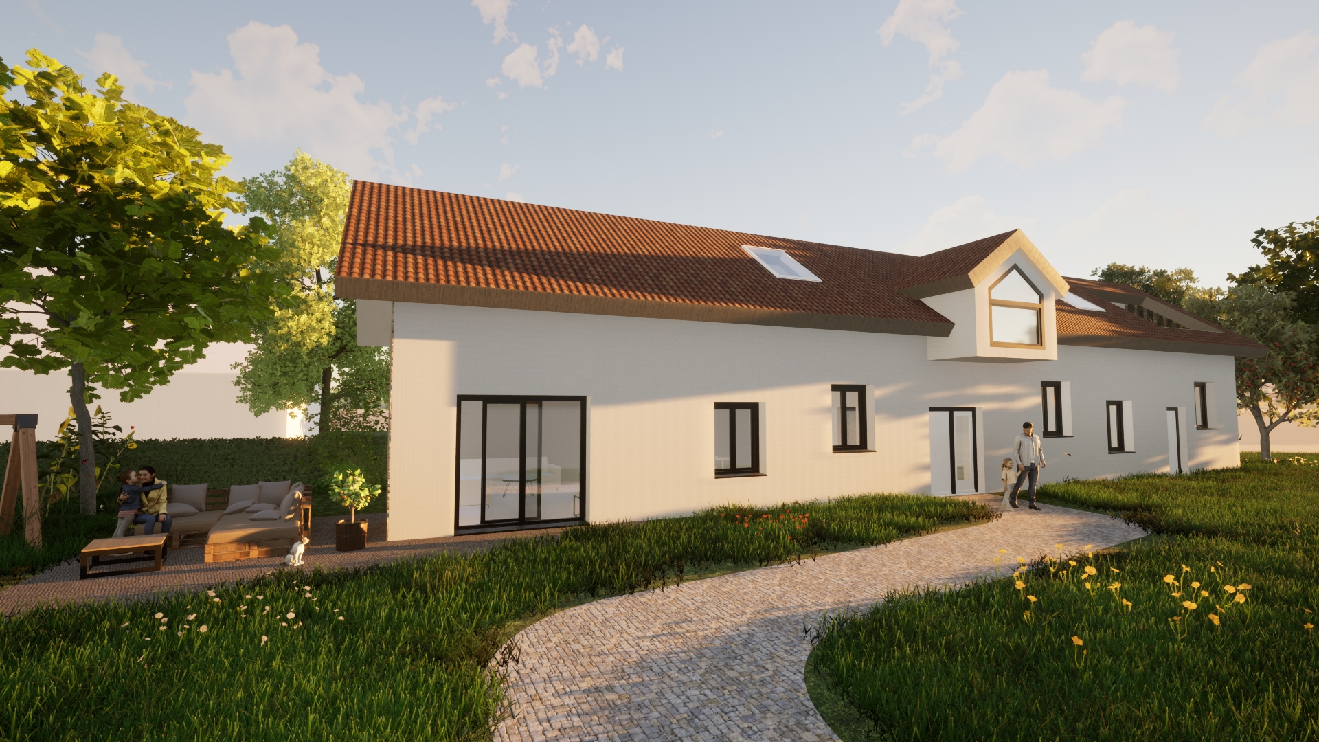 Die Anforderung an die Arbeit war, ein bestehendes Wirtschaftsgebäude so zu sanieren und umzuplanen, dass es den Anforderungen an ein modernes Einfamilienhaus entspricht. Gleichzeitig sollte der Grundcharakter des Gebäudes bestehen bleiben. Somit war auch der Wunsch der Auftraggeberin, das Satteldach zu erhalten, in den Entwürfen zu berücksichtigen.