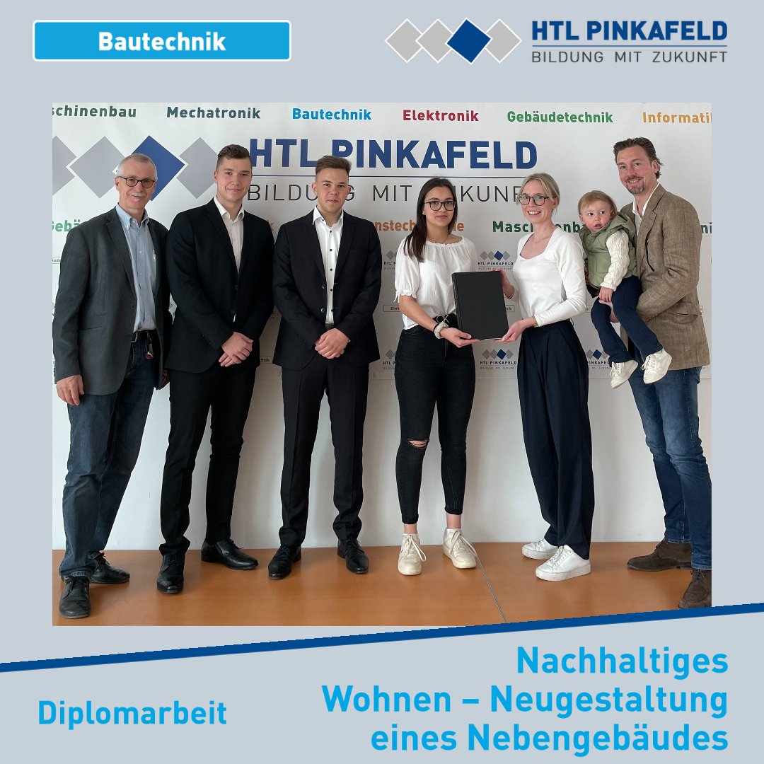 Kürzlich wurde die Bautechnik-Diplomarbeit „Nachhaltiges Wohnen – Neugestaltung eines Nebengebäudes“ von Maturantin Leonie Frisch und den Maturanten Markus Reiterer und Maximilian Resch der Auftraggeberin Antonia Schreiner, selbst Bautechnik-Absolventin der HTL Pinkafeld, übergeben. Betreut wurde die Arbeit von Prof. Derler Peter und Prof. Sasdi Benjamin.