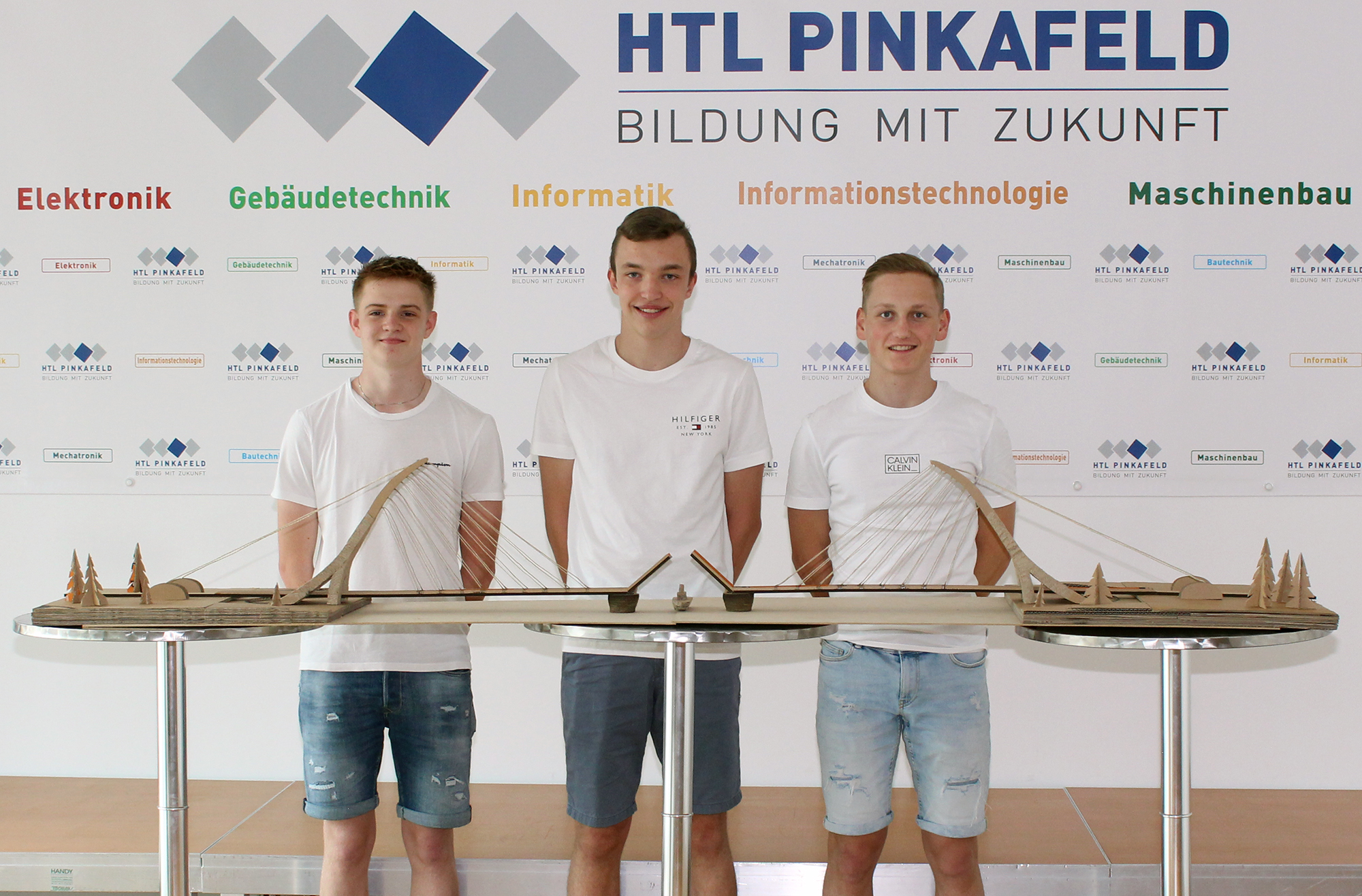 Die Bautechnik-Schüler Lukas Höller, Raphael Beiglböck und Maximilian Bauer konnten mit ihrem Projekt „Dino-Brücke“ den ersten Platz im Bereich „gestalterischer Ansatz“ gewinnen. Ihnen wurde außerdem ein Preisgeld von 300 Euro zugesprochen. Ihre Idee war es, eine Brücke zu bauen, welche es in dieser Kombination noch nicht gibt. Das Herzstück der geplanten Schrägseilbrücke ist der mächtige Pylon in Form eines Dinosauriers, welcher der Brücke das „gewisse Etwas“ verleiht.