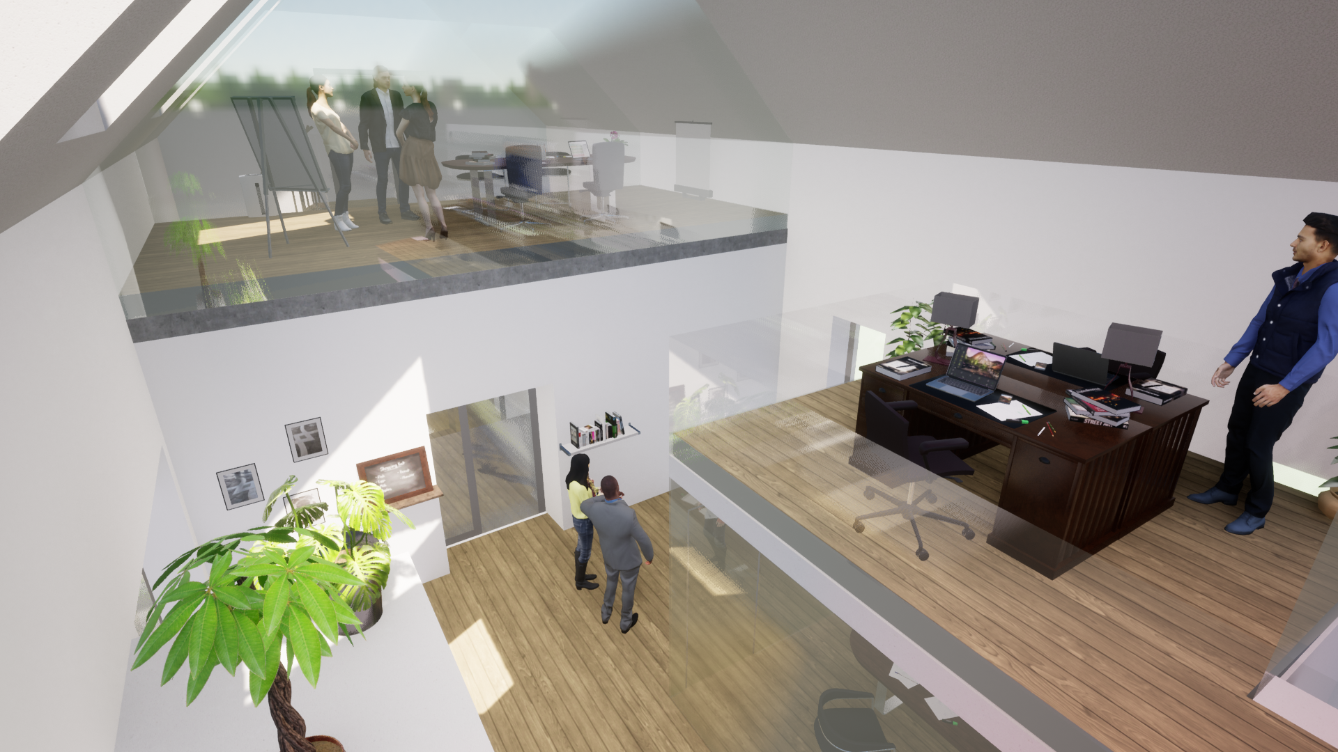 Es wurde ein Gestaltungskonzept für das im Zentrum von Eberau liegende Gasthaus entwickelt mit dem Ziel, in einer der abwanderungsreichsten Regionen Österreichs die Institution Gaststätte neu zu interpretieren. Dabei entstand die Idee, auf dem Areal des Gasthauses Co-Working-Spaces und Übernachtungsmöglichkeiten zu implementieren. Durch die Nutzungsvielfalt, welche neben dem klassischen Gastbetrieb stattfinden kann, wird der Ort zum zentralen Treffpunkt für die Bevölkerung, für Geschäftsleute und Touristen. Hier wird gearbeitet, gegessen, gefeiert und somit der Fortbestand eines aktiven Dorflebens garantiert.