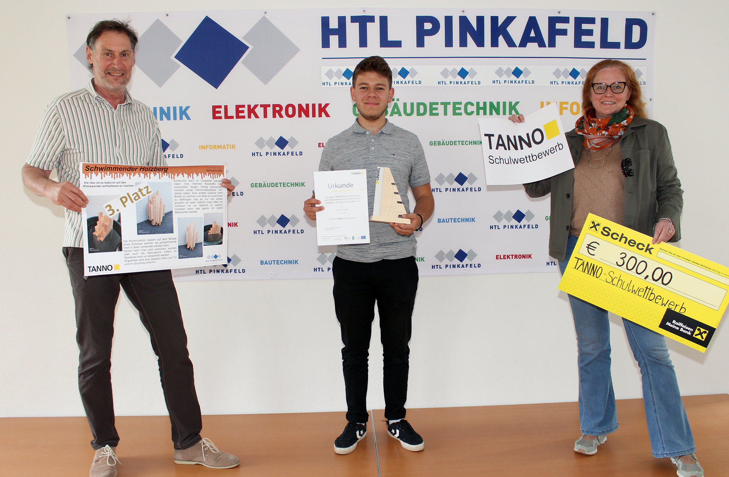 Kürzlich durfte der stolze Preisträger die Urkunde und einen Scheck von EUR 300 entgegennehmen. Prof. Peter Hofbauer, der die Leitung und Durchführung an der Schule organisierte, bedankte sich bei den teilnehmenden Schülern und den Juroren.