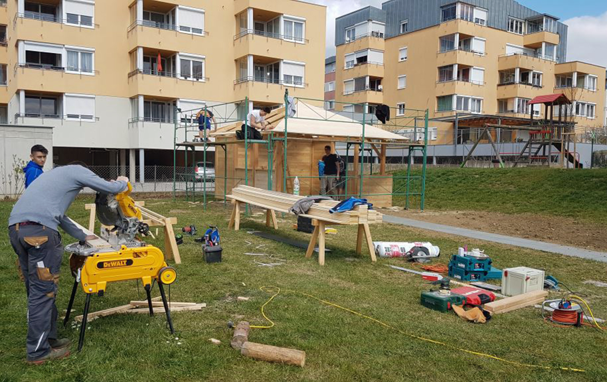 Anfang Juni wurde eine von der Bauabteilung der HTL Pinkafeld erbaute Pergola an das Sozialhaus Oberwart übergeben. Eine Schülerin, Ana-Maria Pressl, und sechs Schüler, David Dobesberger, Maximilian Horvath, Ardian Gojanaj, Nikolas Treplan, Raphael Gruenauer und Samy Nasser, planten und bauten gemeinsam mit ihren Bauhof-Lehrern Dietmar Wanitsch und Jürgen Nika als Fachschul-Abschlussarbeit dieses Bauwerk. Die meisten Arbeiten wurden dabei unentgeltlich in der Freizeit erledigt. Die Materialkosten wurden vom Land übernommen.