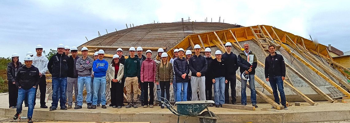 Bautechnik Lehrausgang zur innovativen Betonschalen-Membrankonstruktion