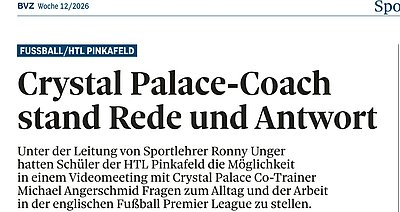 Die BVZ berichtet über das Videomeeting der Gebäudetechnik-Fußballklassen mit Michael Angerschmid