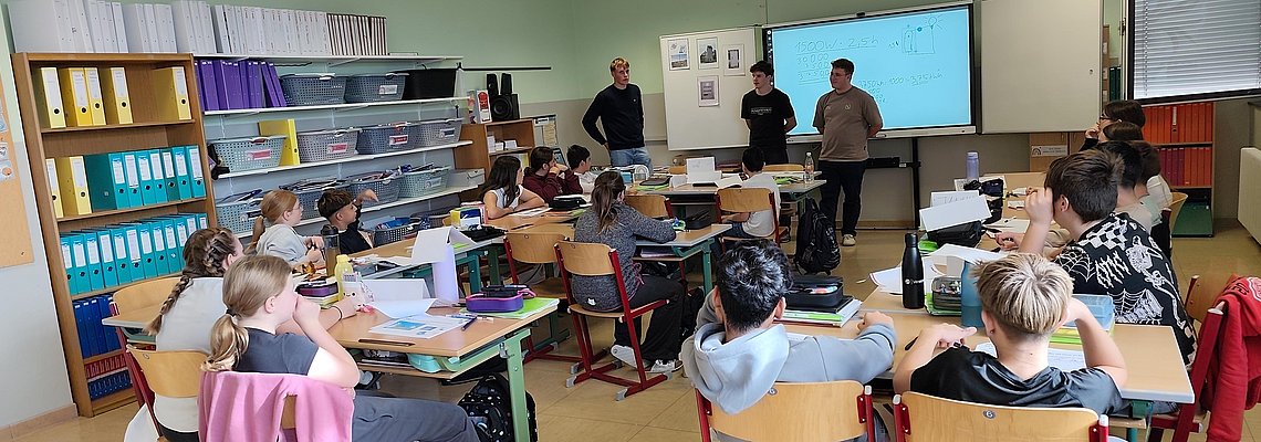 "Wasser marsch", hieß es Ende Oktober, als Professorin Rehling mit 3 Schülern der 5BHGT der Abteilung Gebäudetechnik die 3. Klasse der Mittelschule...