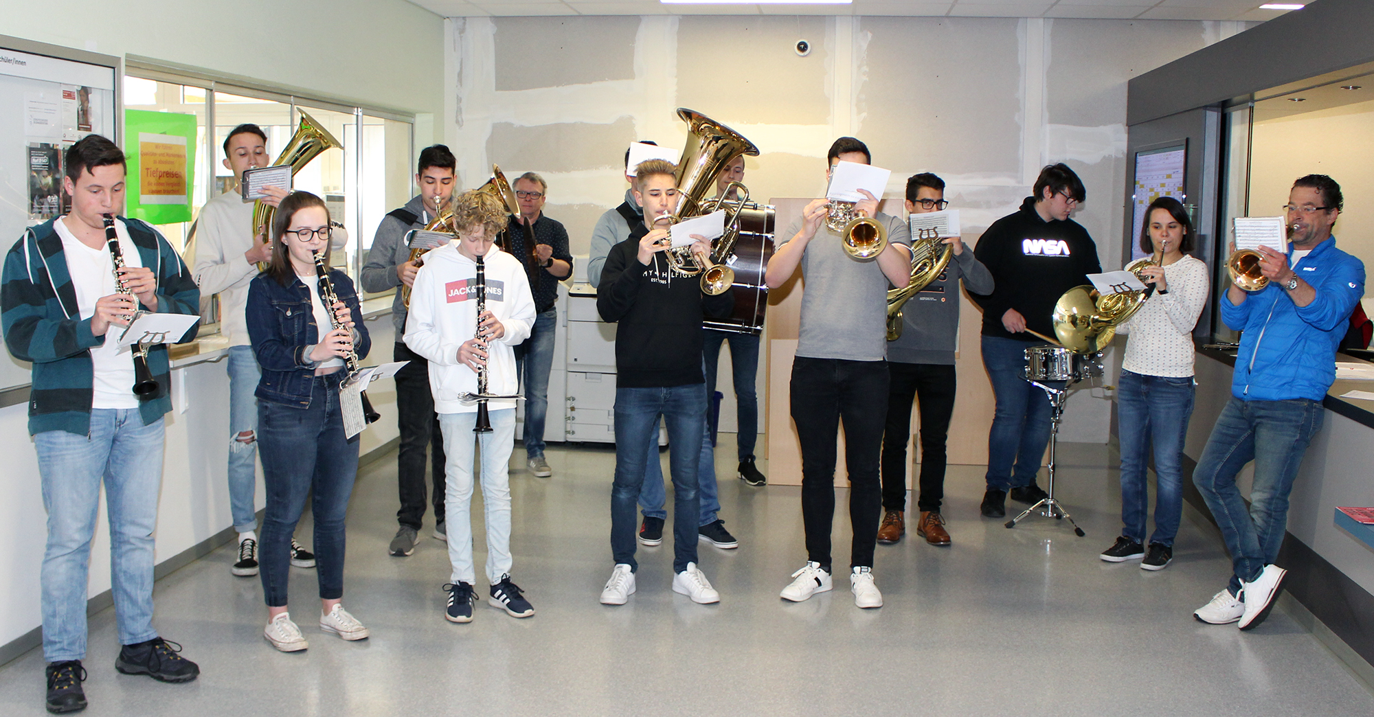 Dir. Wilfried Lercher und das Schulleitungsteam bedankten sich bei AV Schönbacher für die gute Zusammenarbeit und das große Engagement zum Wohle der Schülerinnen und Schüler, die Brassband der HTL Pinkafeld spielte erstmals nach vielen Monaten wieder ein Geburtstagsständchen.