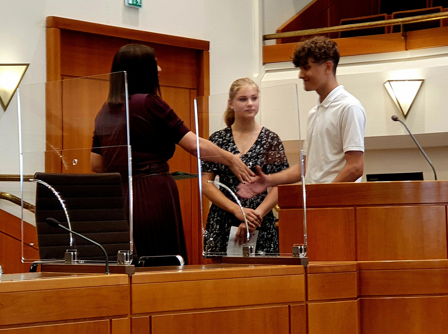 Am 27. Juni 2022 wurden die Key-Messages der zuvor durchgeführten Jugendklimakonferenz von den Gebäudetechnik-Schülern Rebekka Reithmeier und Brian Freiberger präsentiert und an LH-Stvin Mag.a Astrid Eisenkopf offiziell übergeben.