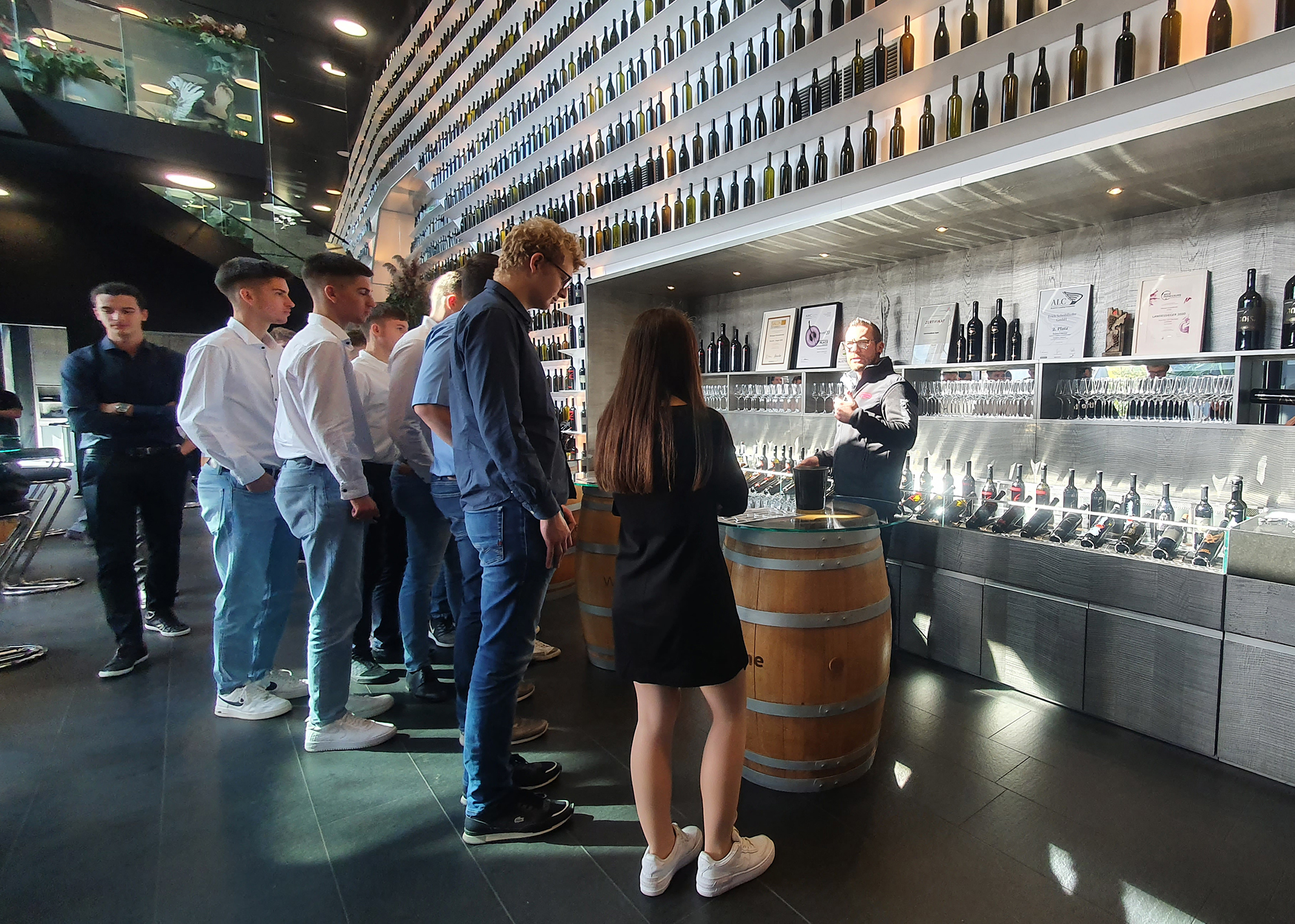 Beeindruckend war die Führung durch das Weingut Scheiblhofer, wo den Schüler*innen die Produktionsabläufe Falstaff prämierter Weine nähergebracht wurde. Der Chef selbst, Erich Scheiblhofer, freute sich die HTL-Schüler*innen in seiner „Hall of Legends“ begrüßen zu dürfen.