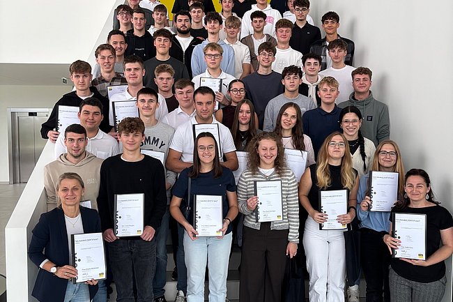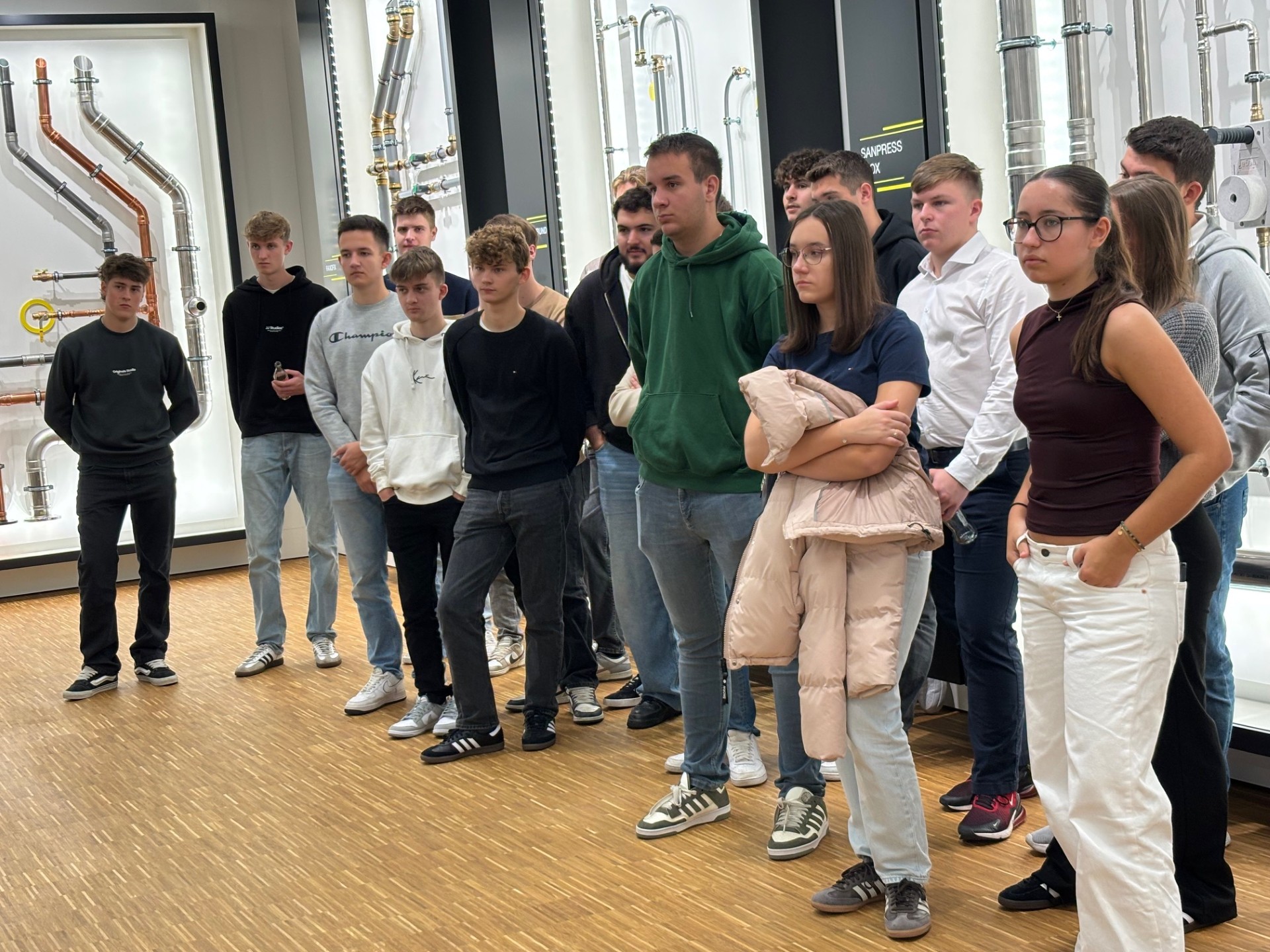 Herr Johannes Blaß, Herr Franz Landershammer und Herr Jörg Wiesbauer von der Firma Viega verstanden es bestens, die Schülerinnen und Schüler für die gebäudetechnische Materie zu begeistern und die Firmenvorstellung und die Besichtigung des imposanten Schauraums sowie die Themen Systemtechnik und Wasserhygiene anschaulich und kurzweilig zu vermitteln.