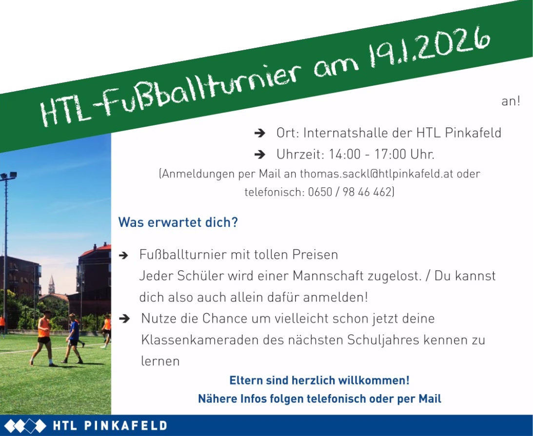 (Anmeldungen per Mail an thomas.sackl@htlpinkafeld.at oder telefonisch: 0650 / 98 46 462)