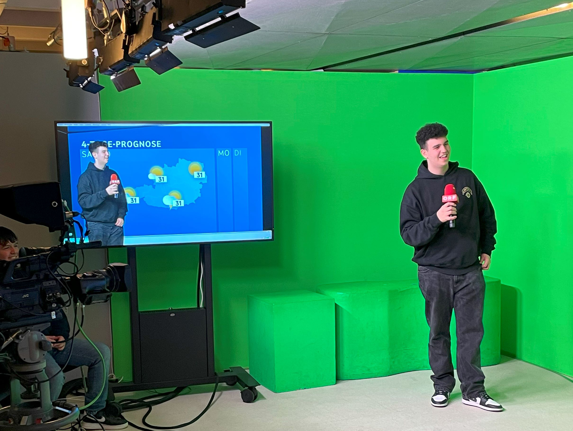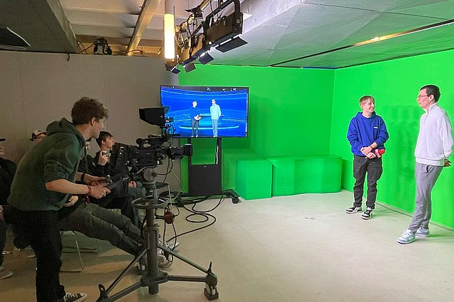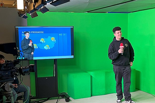 Der Programmpunkt führte die Schüler*innen in das ORF-Zentrum Wien Küniglberg. An diesem Ort bekam man Einblicke in das 75.000 m² große Mediengelände sowie in einzelne Fernsehstudios. Dazu erhielt man aufschlussreiche Auskunft über die verwendeten Audio-, Ton- und Lichttechniken.