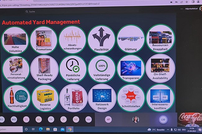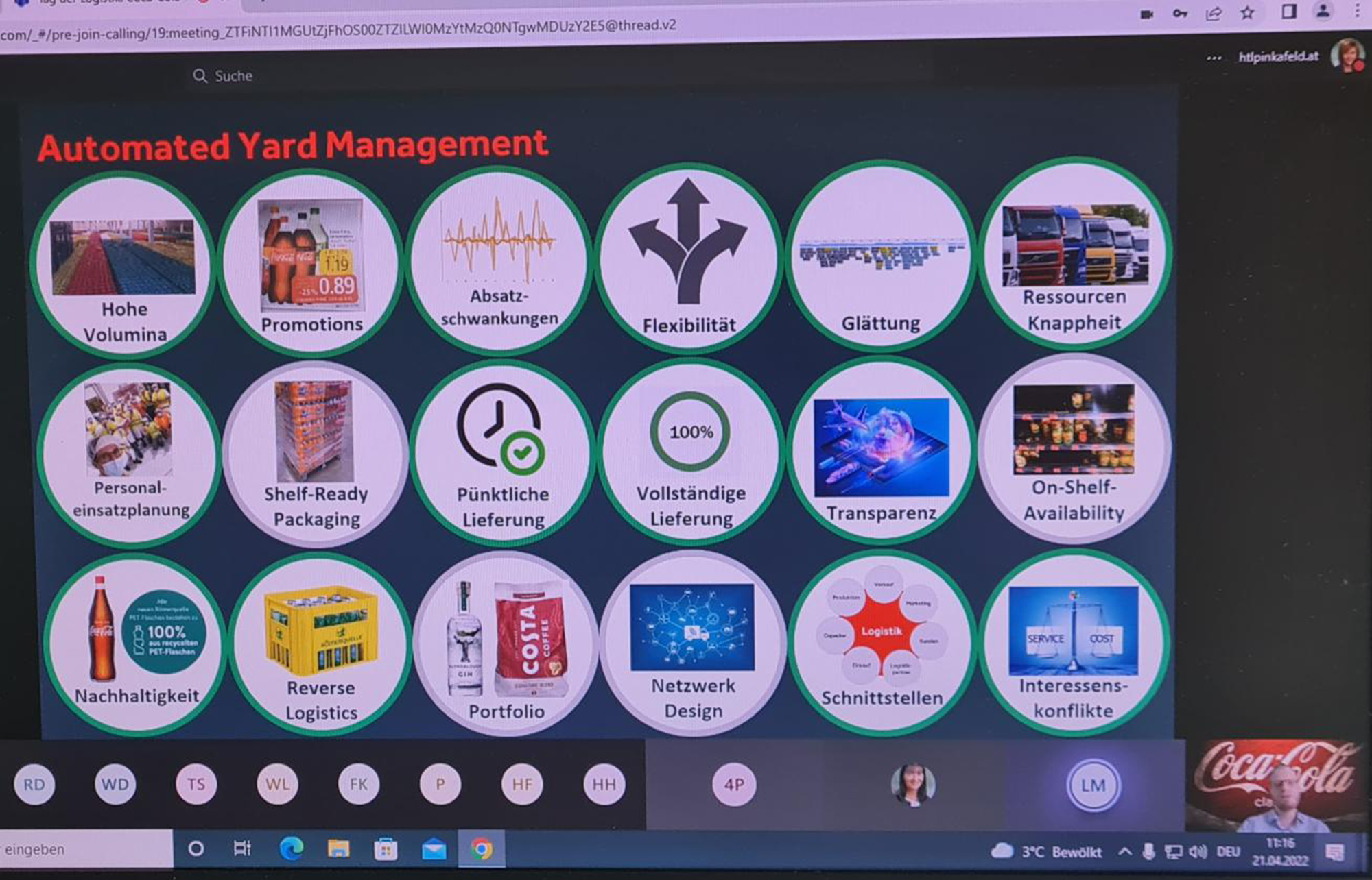 Im ersten Teil dieser „Online-Exkursion“ präsentierte Coca Cola HBC eindrucksvoll die logistischen Herausforderungen ihres Werkes in Edelstal, wobei in allen angesprochenen Bereichen die Nachhaltigkeit des Handelns in den Vordergrund gestellt wurde.