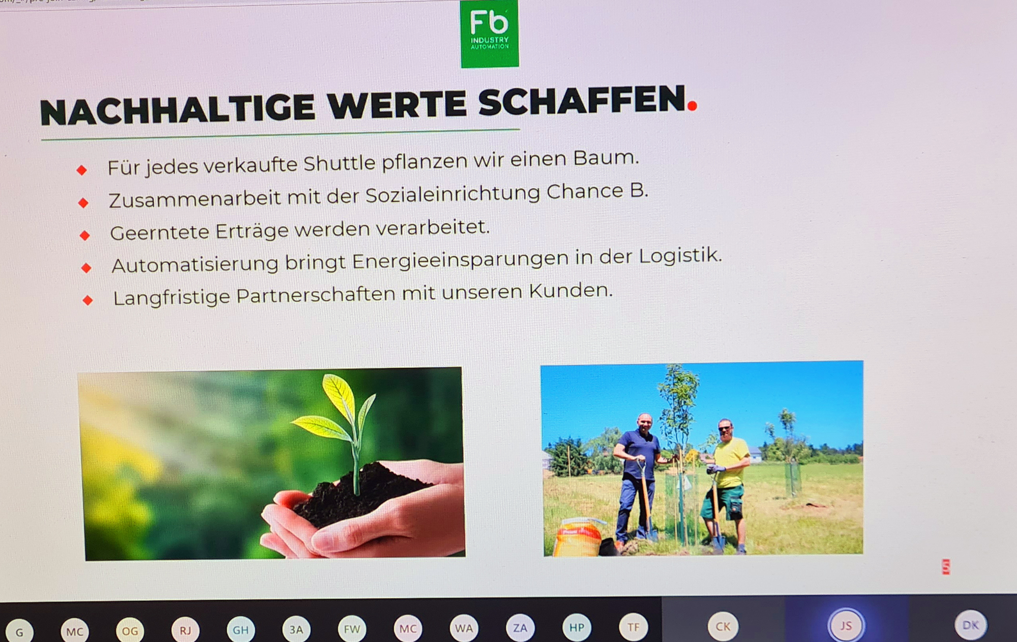 Im zweiten Timeslot wurden die Schülerinnen und Schüler von Vertretern des Unternehmens Fb Industry Automation, Gleisdorf, virtuell durch deren All-In-One Intralogistikgesamtlösungen geführt. Beide Unternehmen gingen im Anschluss auf die Fragen der Schüler ein und stellten sich in einer intensiv geführten Diskussion als attraktive Arbeitgeber dar.