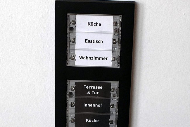 Dabei werden diese Funktionen mittels KNX-Bussystem vernetzt und können so besser überwacht und geregelt werden. Durch die Einbindung von Smartphone und Tablet können alle Zustandsänderungen und Regelvorgänge auch von außen ortsunabhängig überwacht und gesteuert werden. Auch eine „Alexa“ wurde in das Bussystem integriert, um mit Sprachbefehlen Raffstores zu bewegen oder Lampen zu dimmen. Weiters wurden „Szenen“ realisiert, die z.B. beim Fernsehen mit einem Knopfdruck angenehme Bedingungen betreffend Raumlicht, Raffstores usw. zu erzeugen. Mit Hilfe des KNX-Bussystems sowie den Komponenten von GIRA und DALI konnte eine optimale Steuerung für das Gebäude erstellt werden, die keine Wünsche der Benutzer offenlässt.